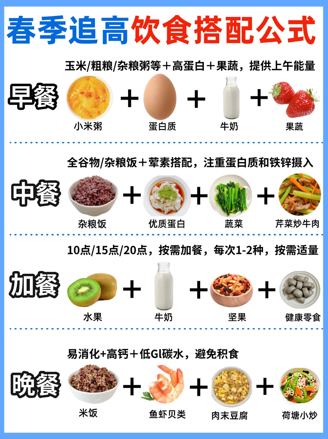 🙋‍♀️春季是孩子的长高黄金期,一定要抓住追高机会哦!我家娃之前也是吃饭一般、身高偏矮,做了超多功课才总结出这套春季成长攻略,