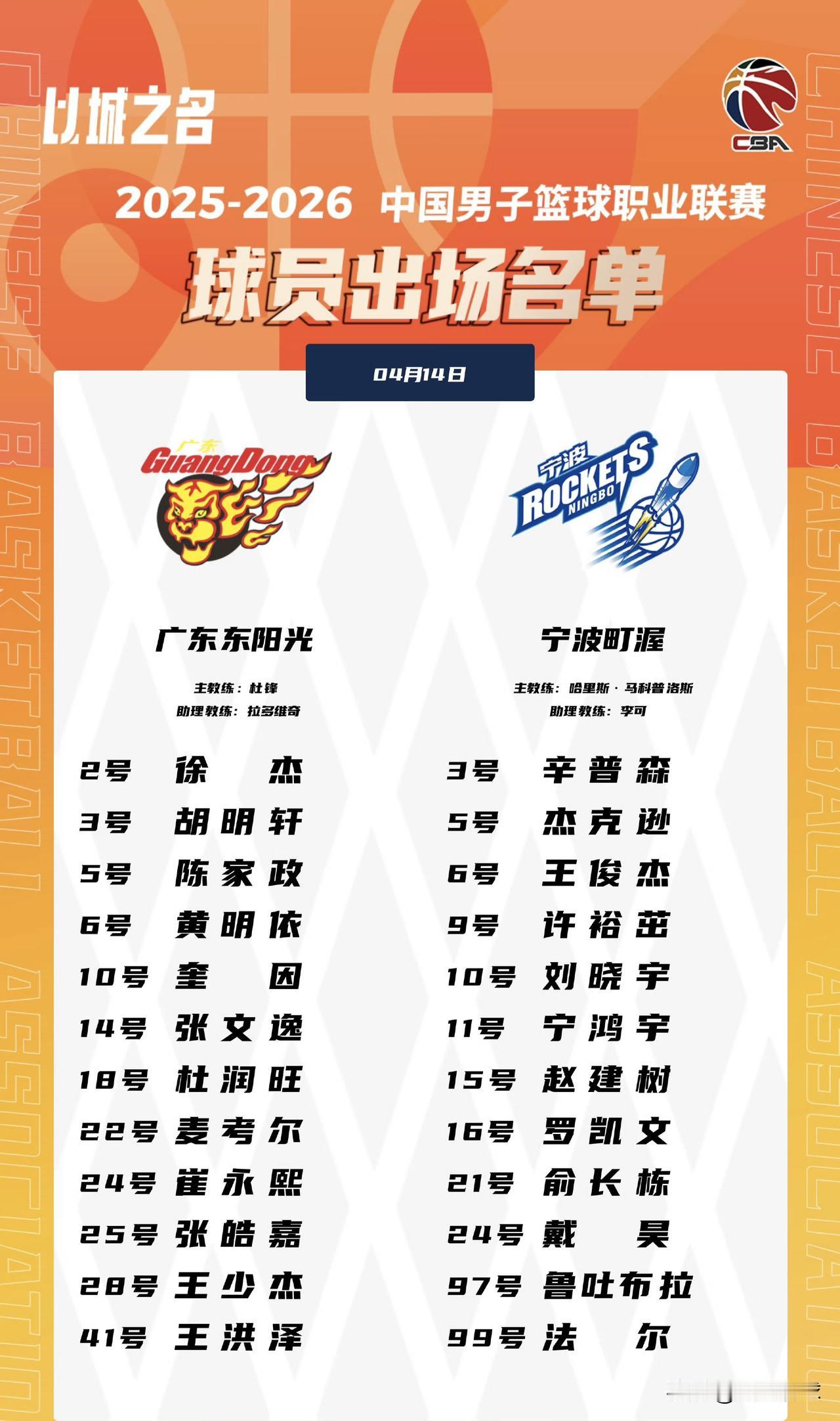 杜锋缺席今晚广东宏远与宁波比赛,双方12人大名单出炉