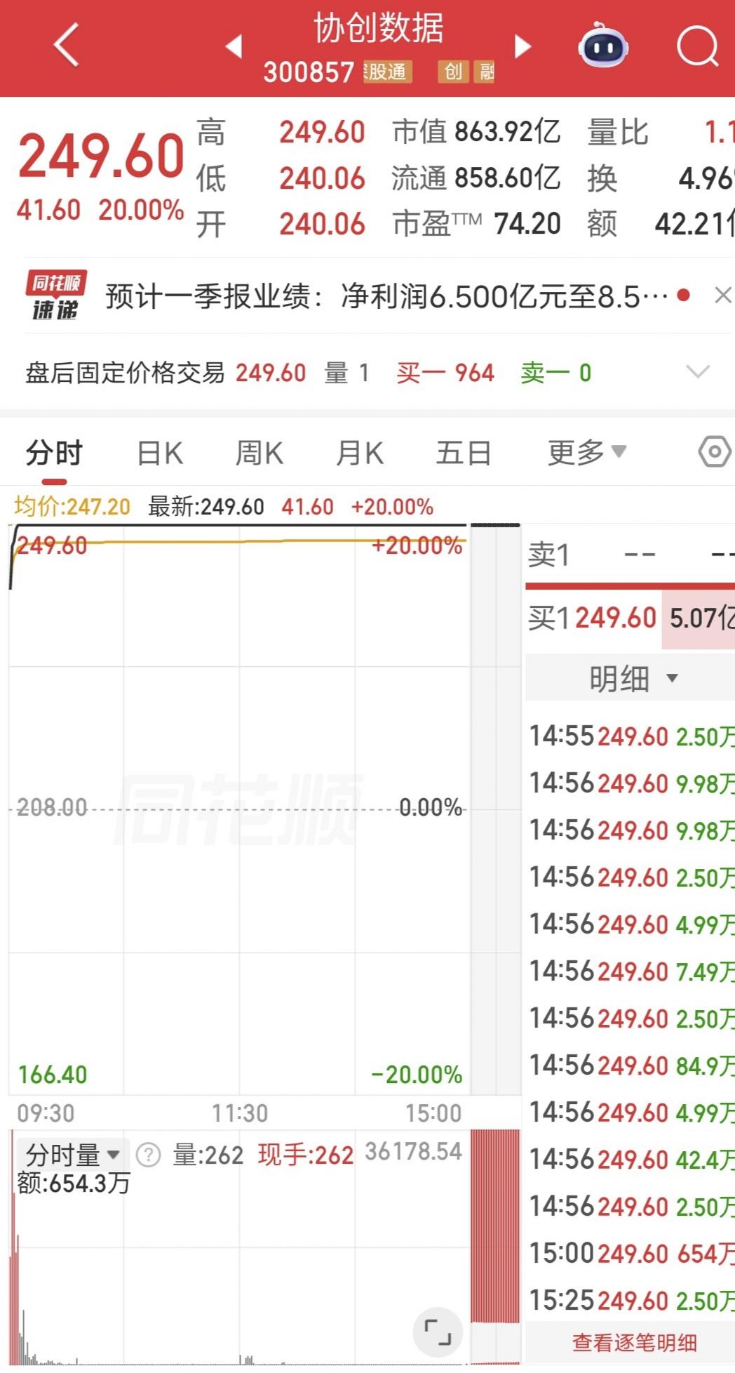 今天协创数据开盘快速涨停。