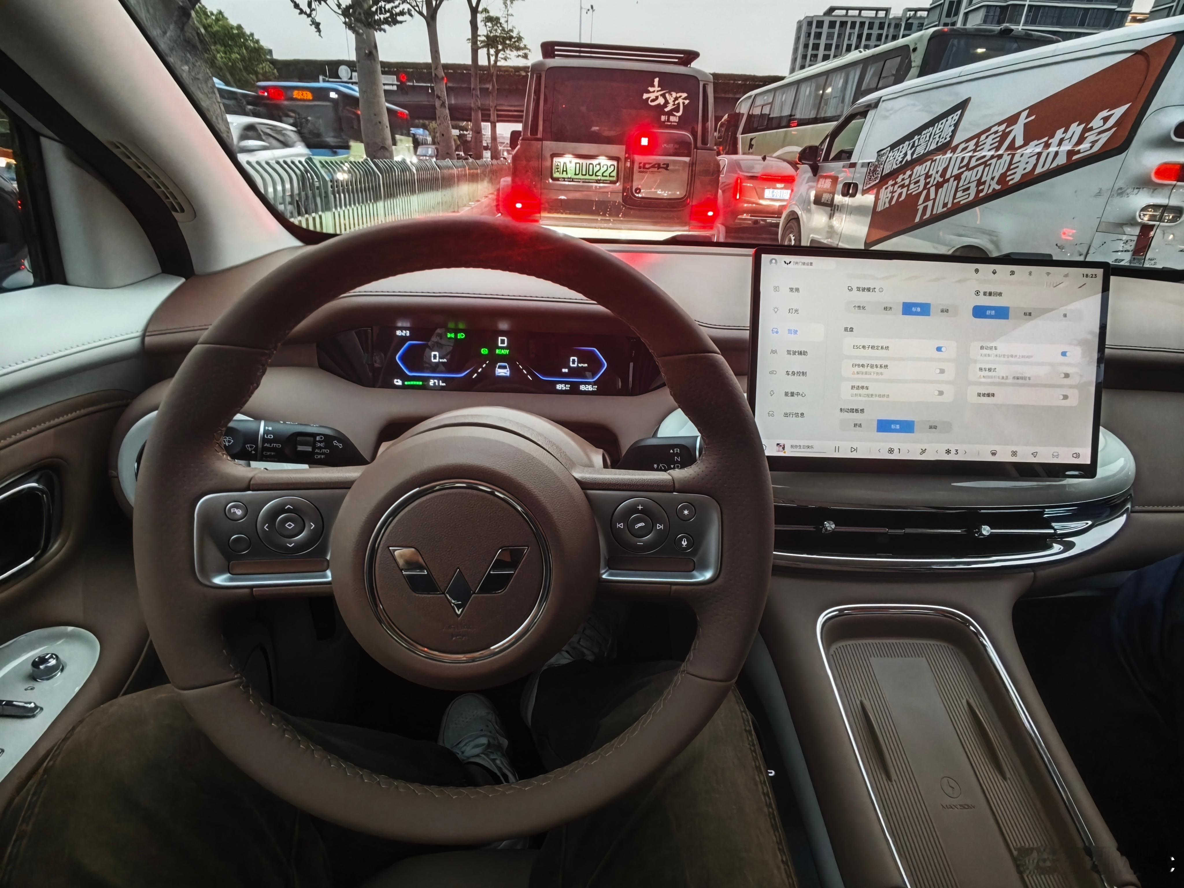 在试驾车上好牌的第一天,我就进行了试驾体验,小车很能勾起我内心原始的好奇与冲动。试驾车是顶配版本,首先我还是坐上了后排,过几个坑洼我就已经开始感到意外了,这还是那个五菱吗?在一台六七万的车上,经过一些不那么夸张的坑洼路面时这套底盘甚至有了一定的质感与高级感,这是我以前从未想过的。当然,它也有瑕疵,比如过尖锐路面伸缩缝和尖锐凸起时还是会有硬碰硬的感觉,也会带来明显的余震,平时底盘传来的细碎震动也偏多,但相信我,这套底盘绝对和廉价与粗糙没了关系,我可以为这个结论负责。