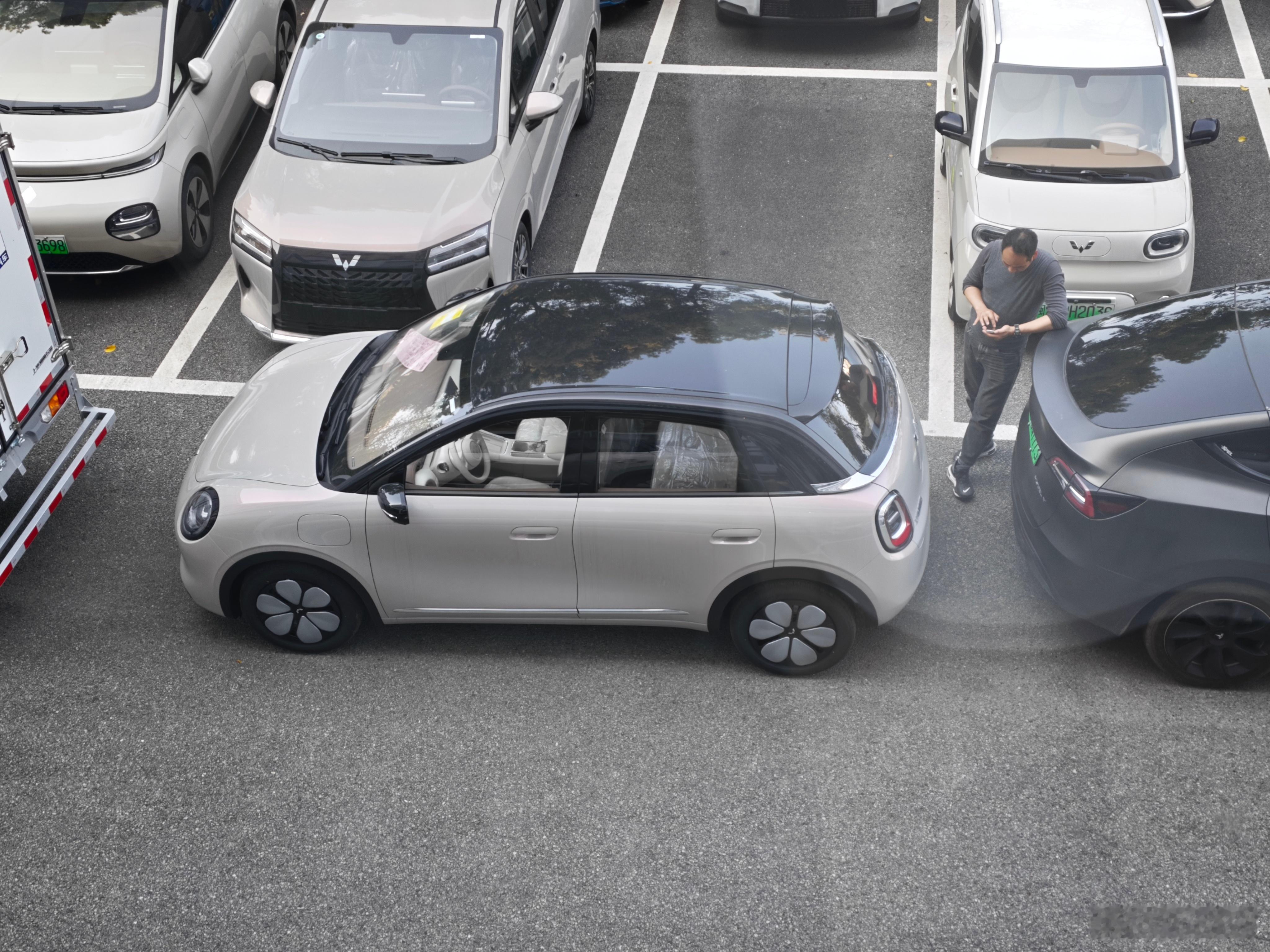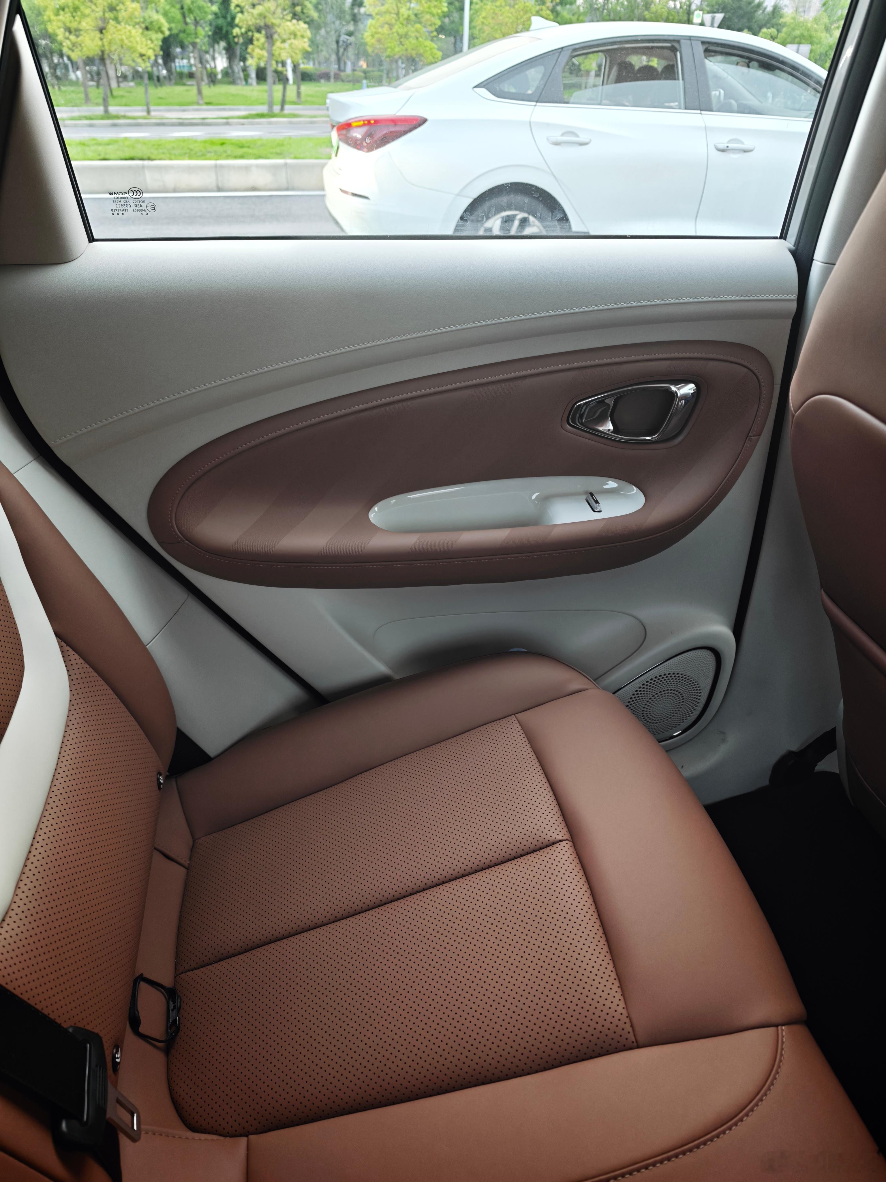 外观确实是圆润可爱也精致了的,负责送车的师傅说车头很像甲壳虫,确实是那个味道。整体侧面比例也很和谐,轮毂像花瓣一样,略微有点怪,半隐藏机械门把手必须好评。车尾不知道为什么设计出了一个小平台,有一丢丢小鹏p7+的味道,但如果这可以阻挡被卷起的泥水,那也是一大好事,毕竟这车依旧没有后雨刷。