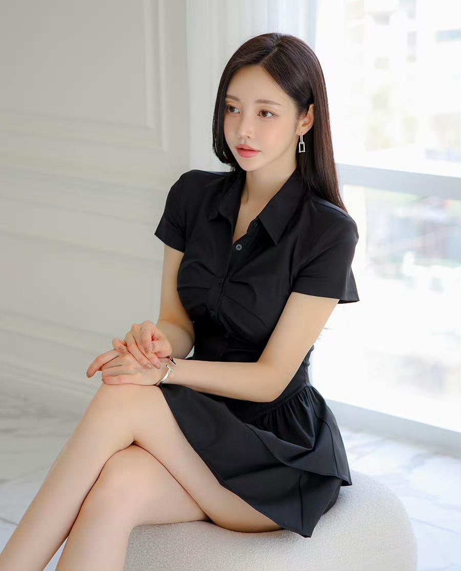 黑色连衣裙,是衣橱里最经典的“底气”单品🖤 利落的衬衫领修饰肩颈线条,收腰设计