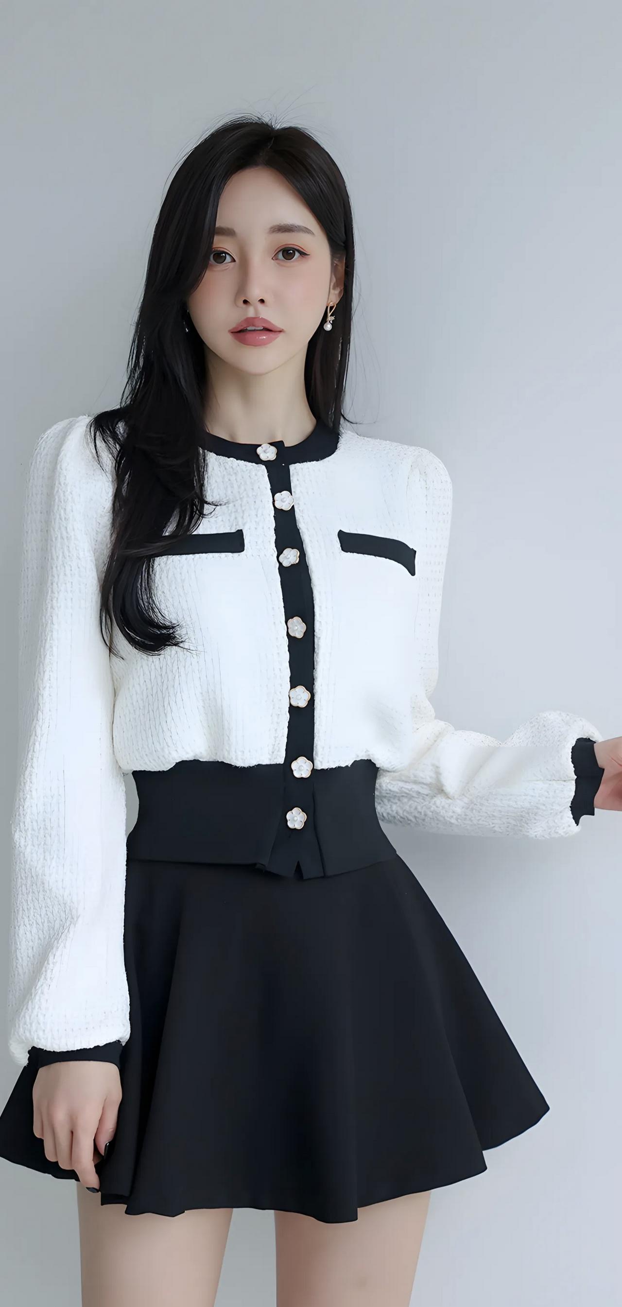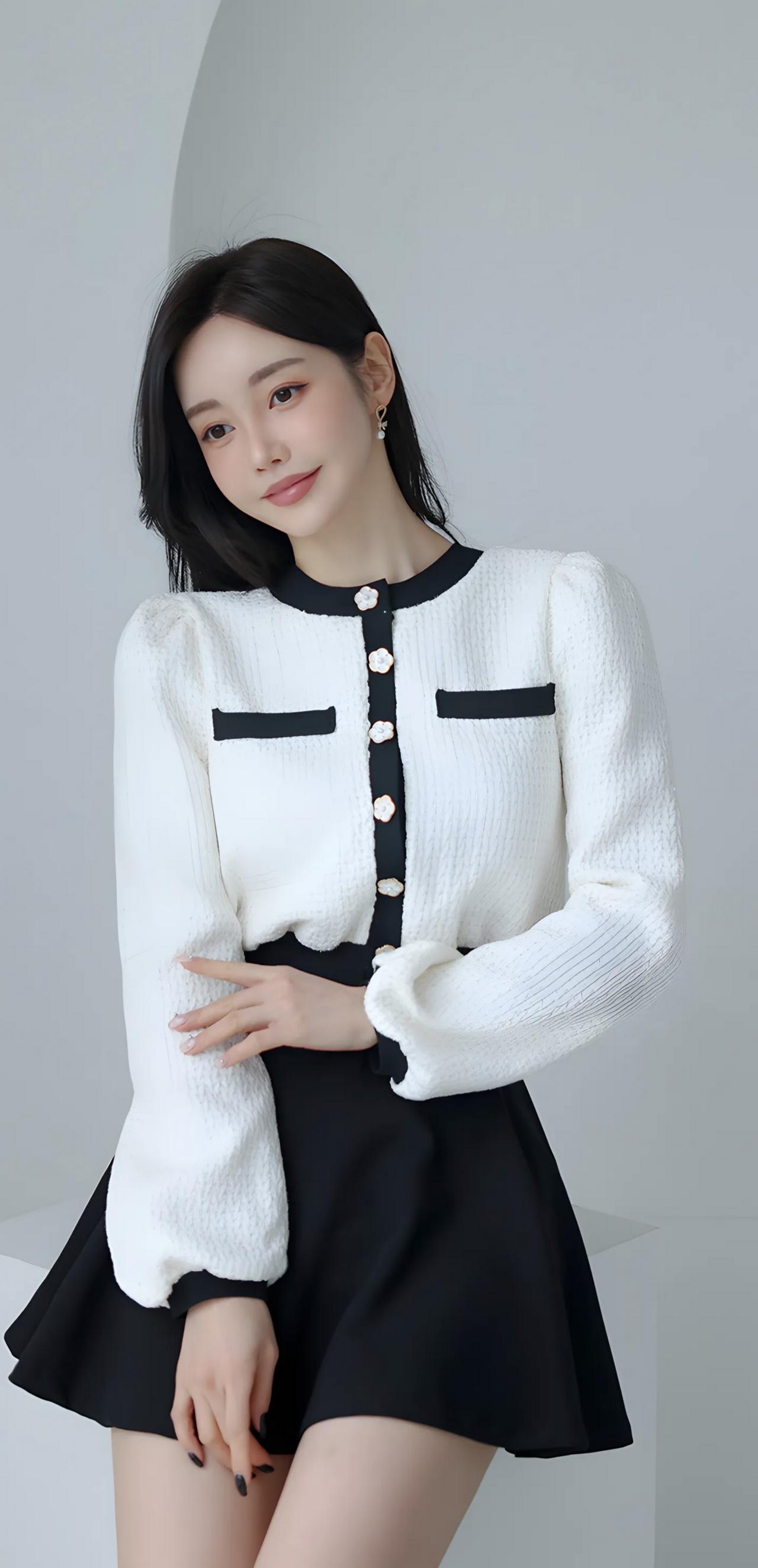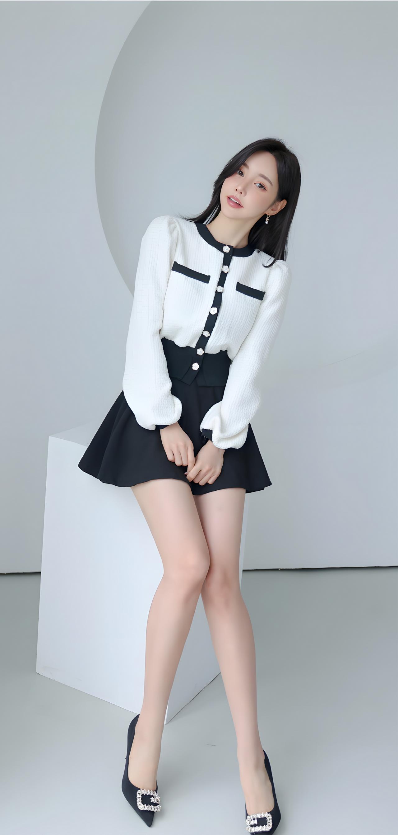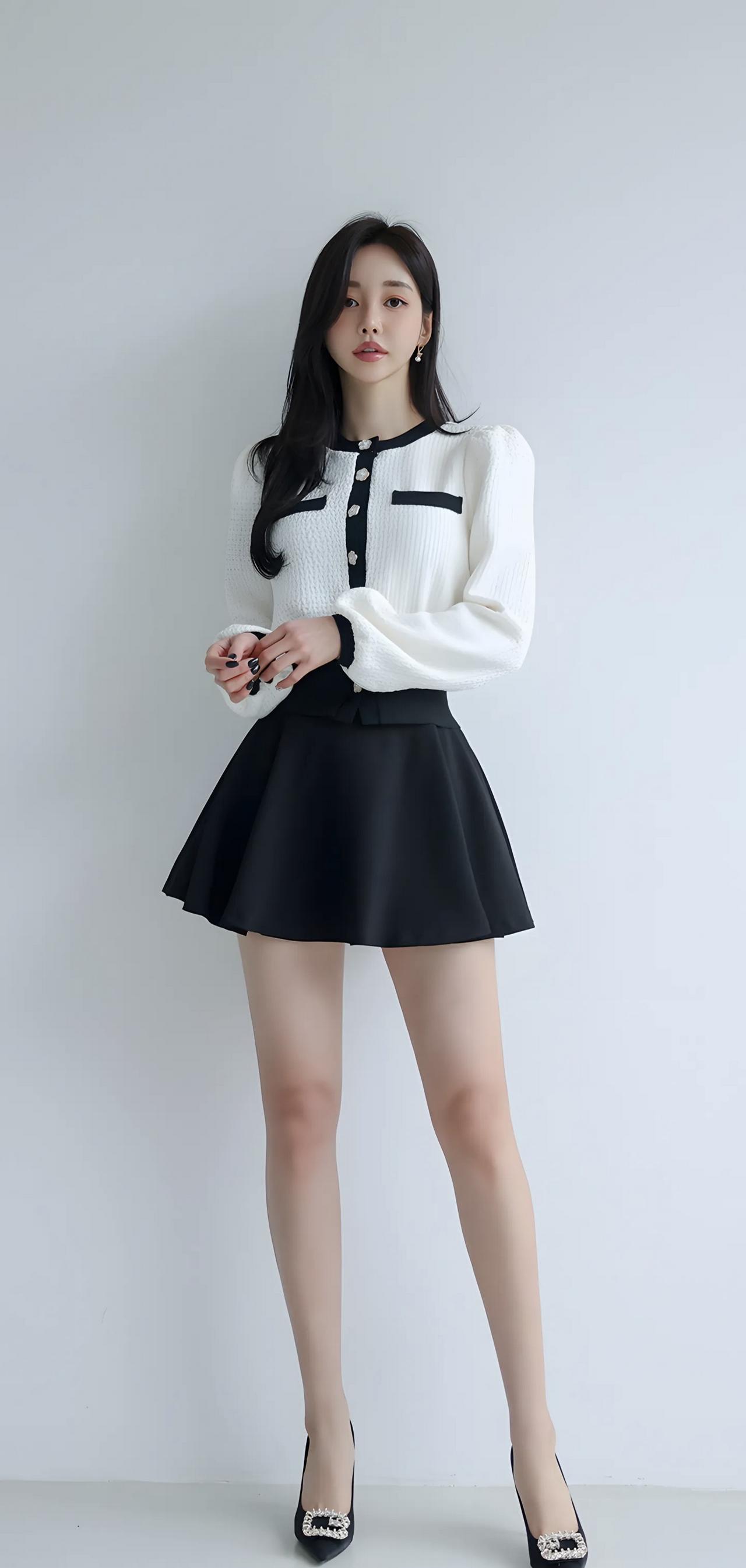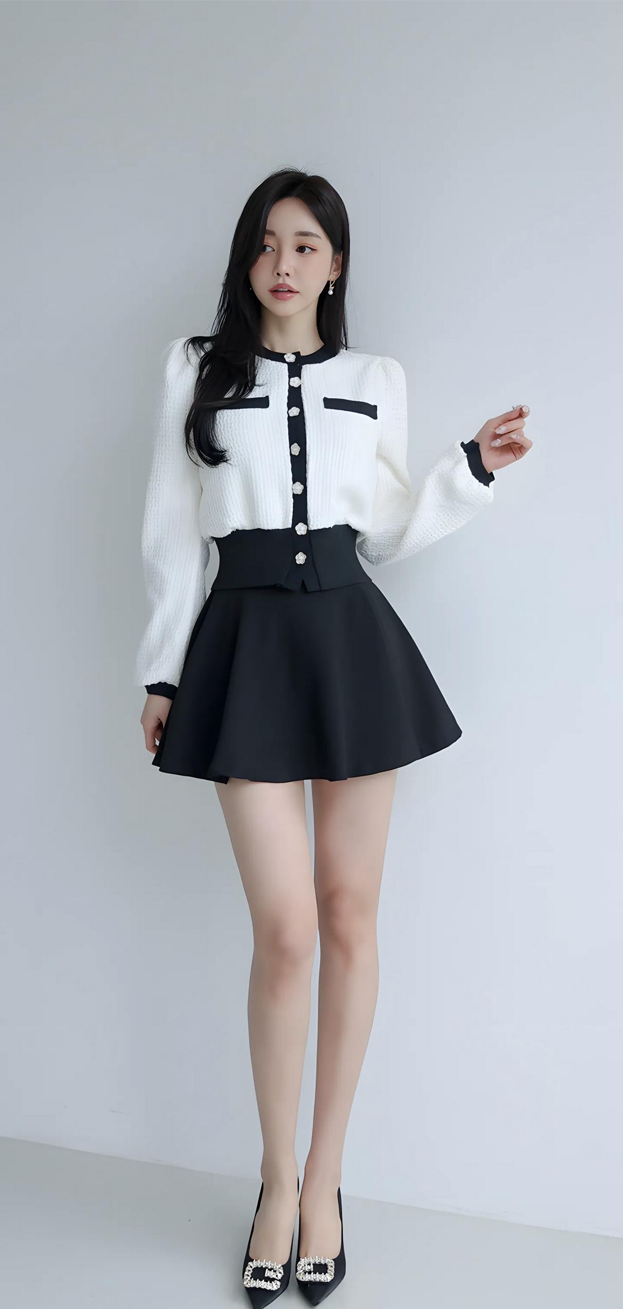 甜美学院风穿搭,黑白撞色毛衣搭配短裙,少女心满满!💕
