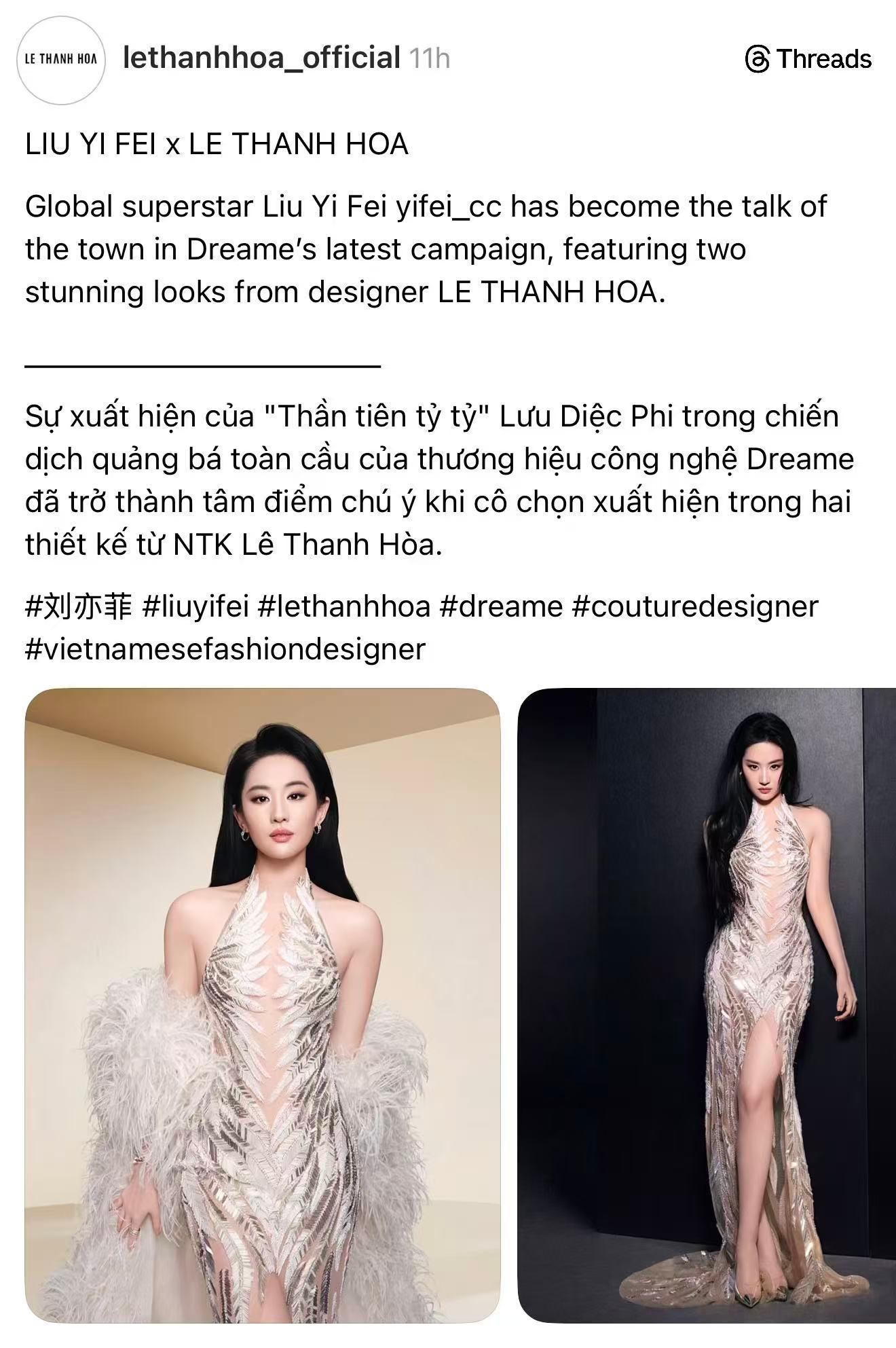 LE THANH HOA品牌官方及设计师本人多平台认领刘亦菲追觅大片中演绎的两套
