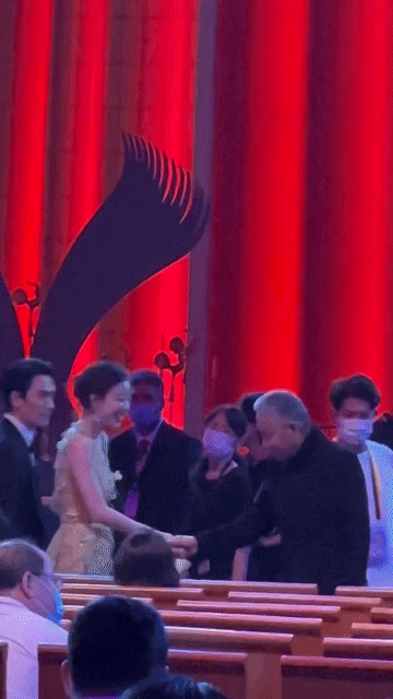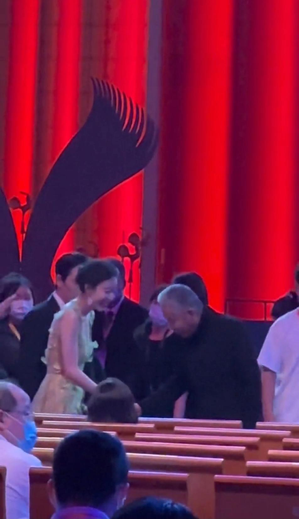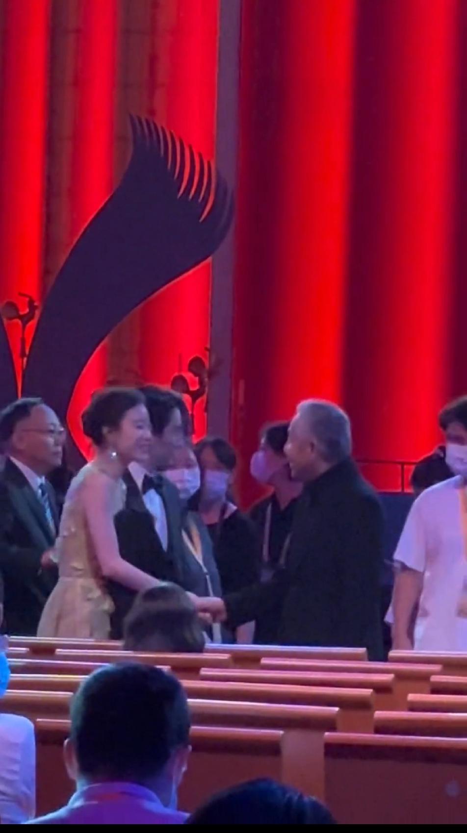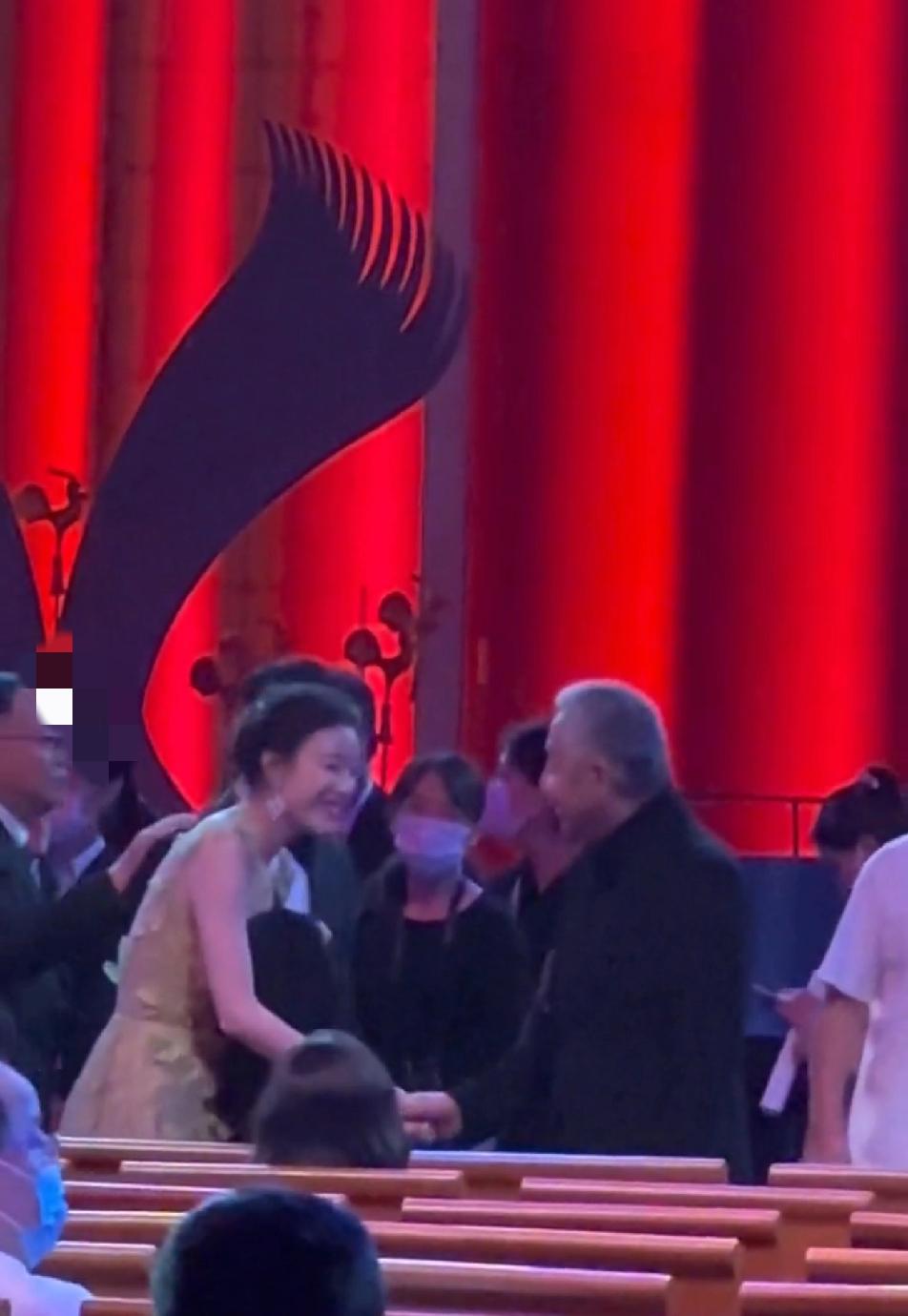 倪妮也只有在陈道明面前会那么羞涩,扭捏吧?跟陈道明低头握手的时候,倪妮立马用披肩