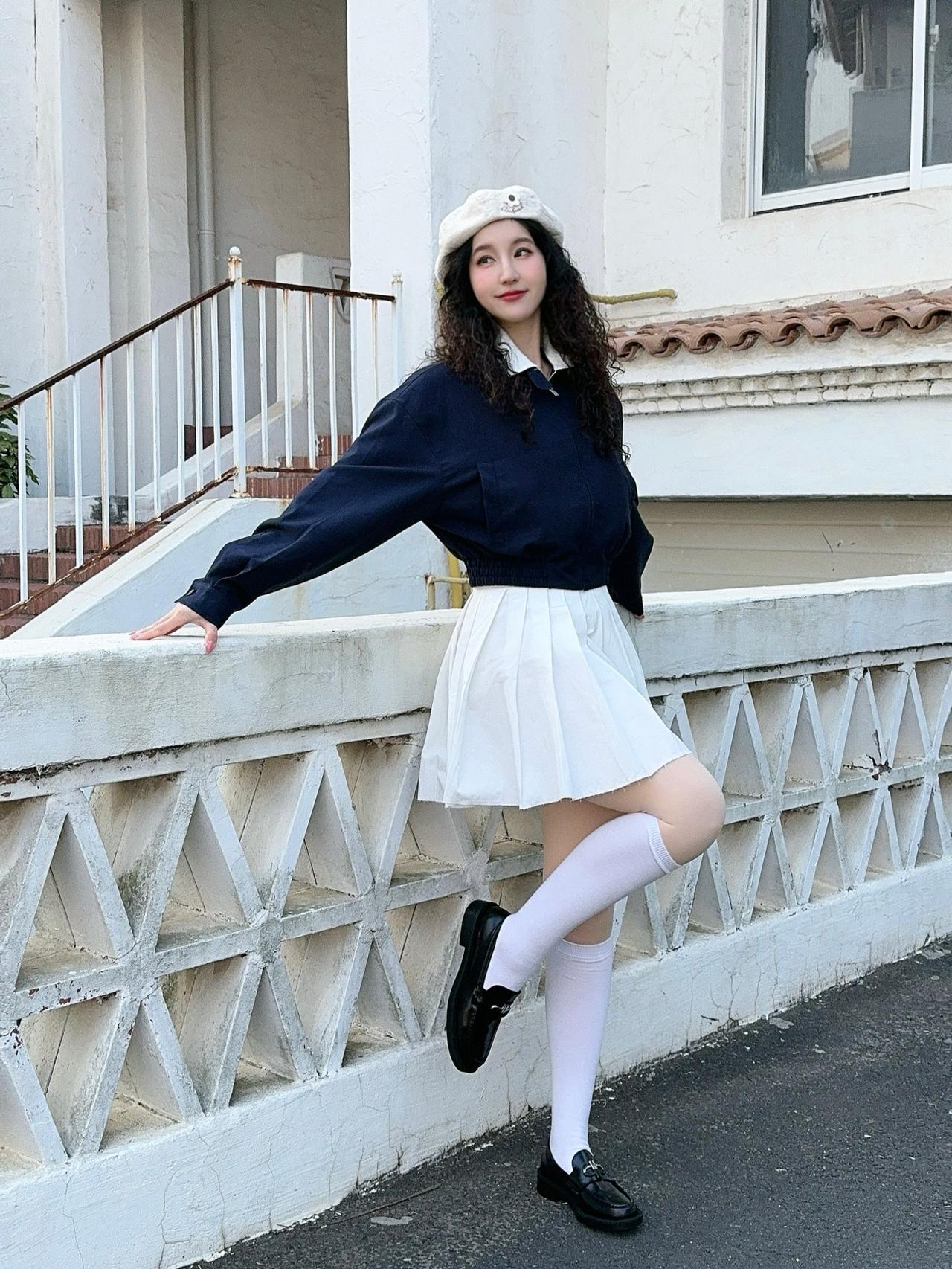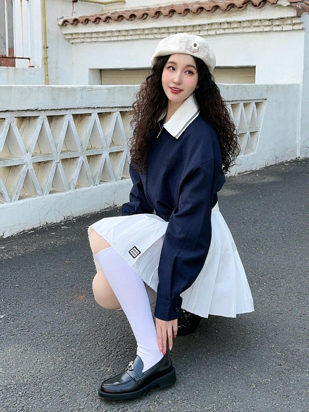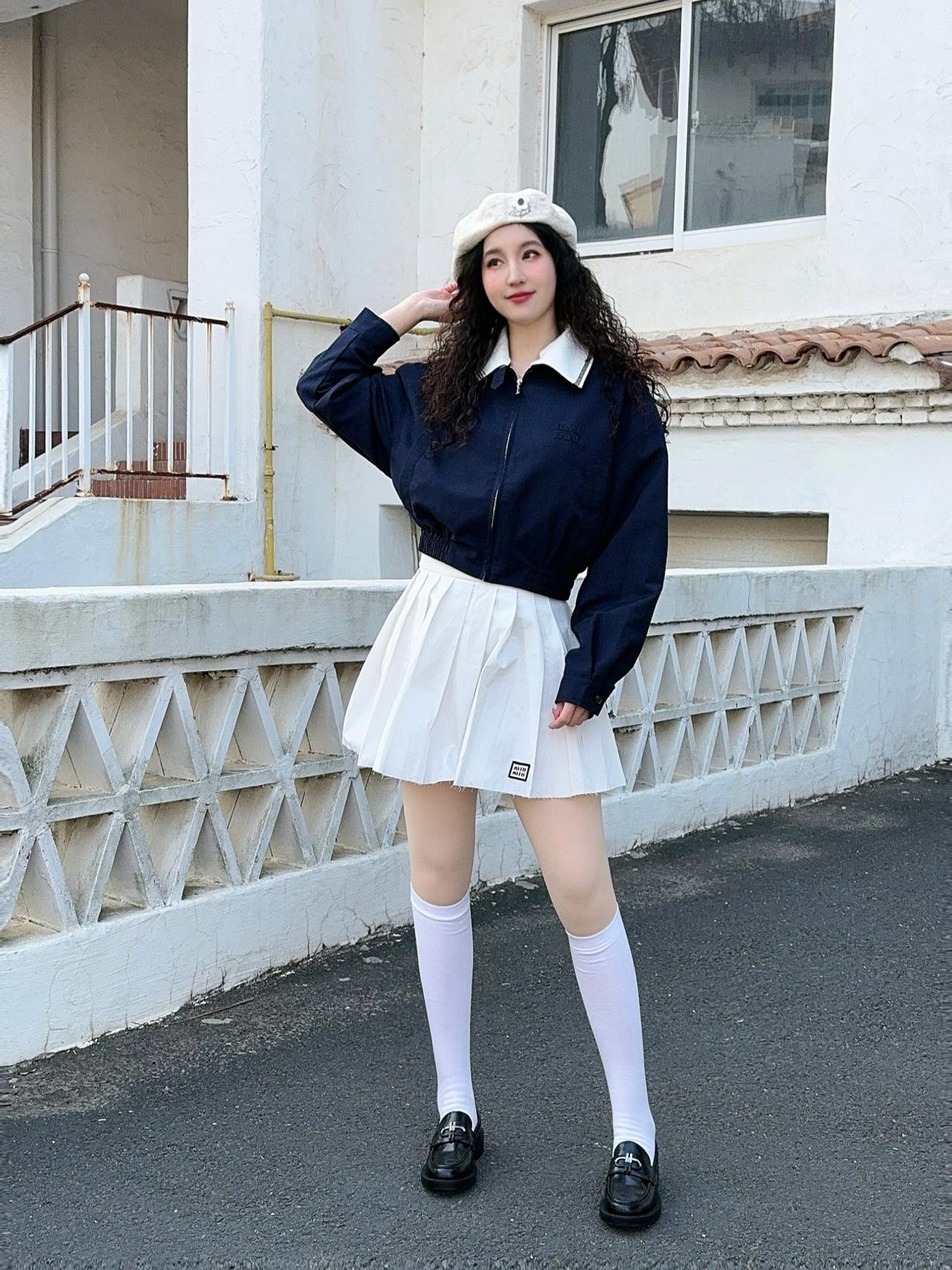 白色毛衣配黑色百褶裙,这组合简直是优雅气质穿搭的典范。白色毛衣温暖又柔和,给人一