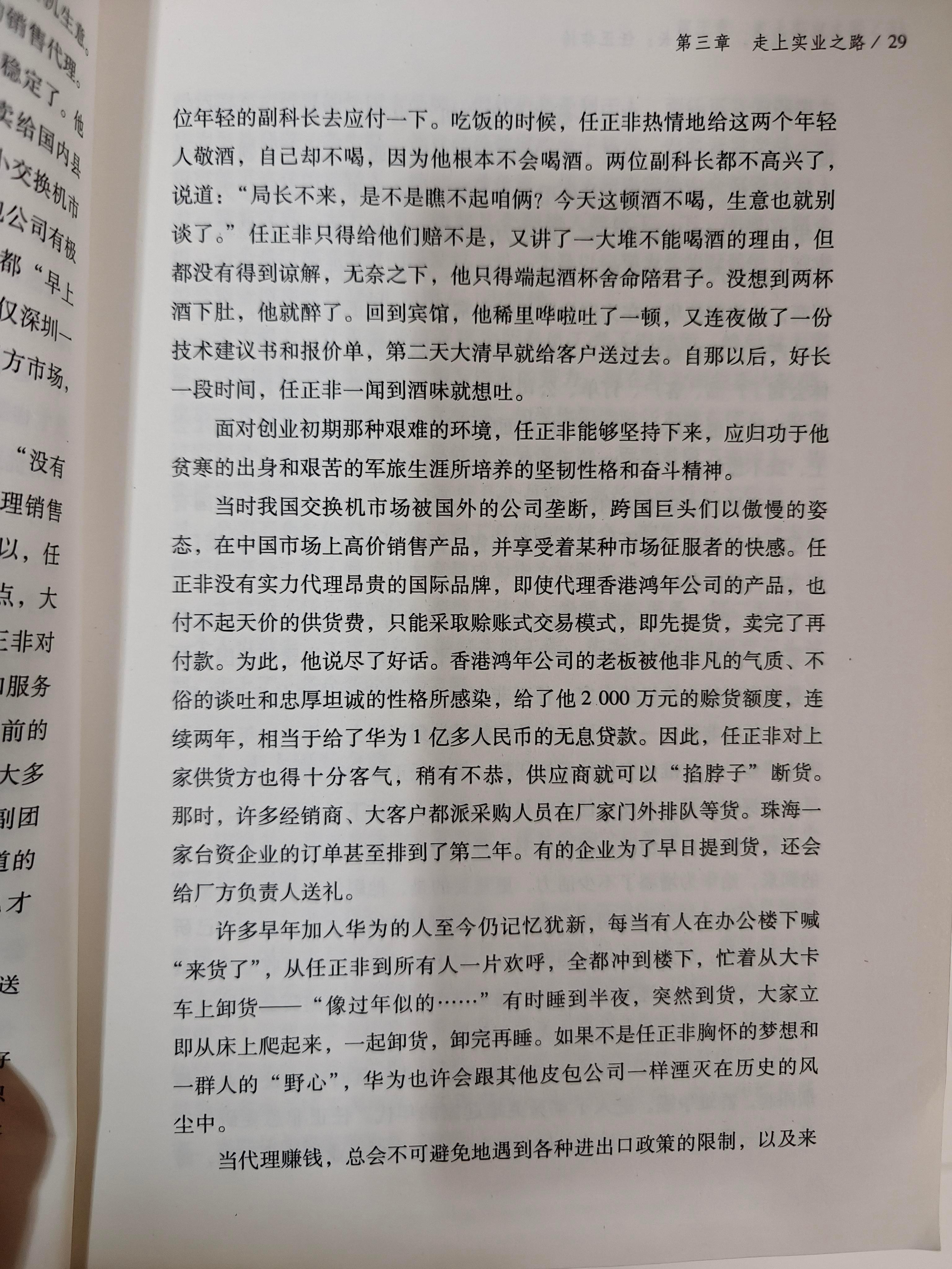代理交换机数月后,任正非认识到,在市场对抗和竞争中,“没有什么只有你会做,别人不能做的,关键是客户给不给你做”。代理销售是一种主要凭关系、价格、服务而没有自身技术可言的行当……如果不是任正非胸怀的梦想和一群人的“野心”,华为也许会跟其他皮包公司一样湮灭在历史的风尘中。