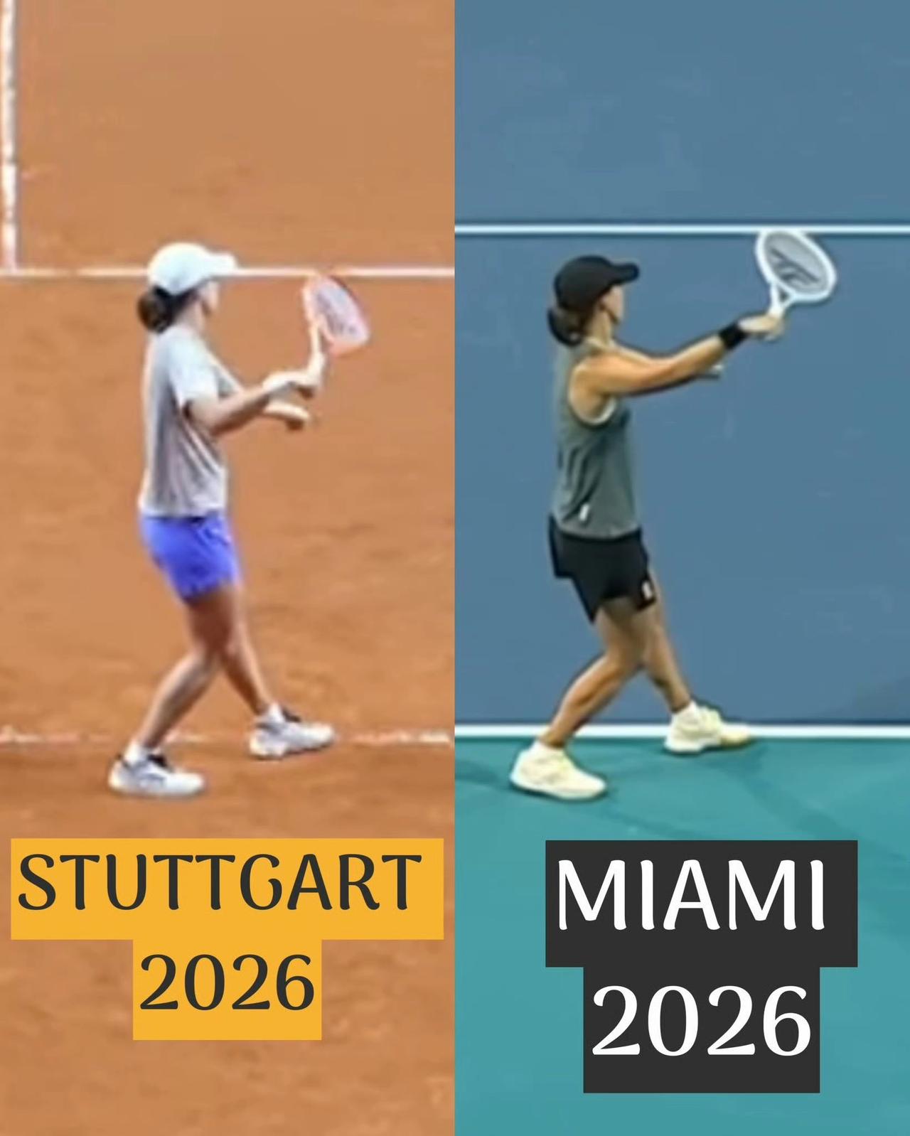 罗伊格执教首秀,眼尖的球迷发现,斯瓦泰克的发球动作相比于迈阿密站时有了明显改变。