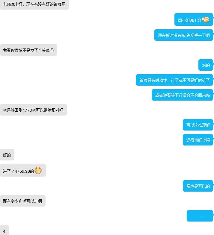 同步一波实盘周女士的跟单操作:晚间的4770空单4764精准离场,夜宵钱都报销了。依旧是点点手指几分钟结束战斗,依旧盈得干净利落。不必怀疑,实盘有的单子未必能全部同步到微博,但只要是我发在微博上的公开单,实盘学员一定是第一时间同步进场、同步离场的。黄金金价