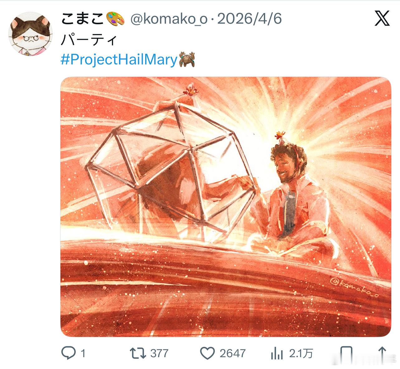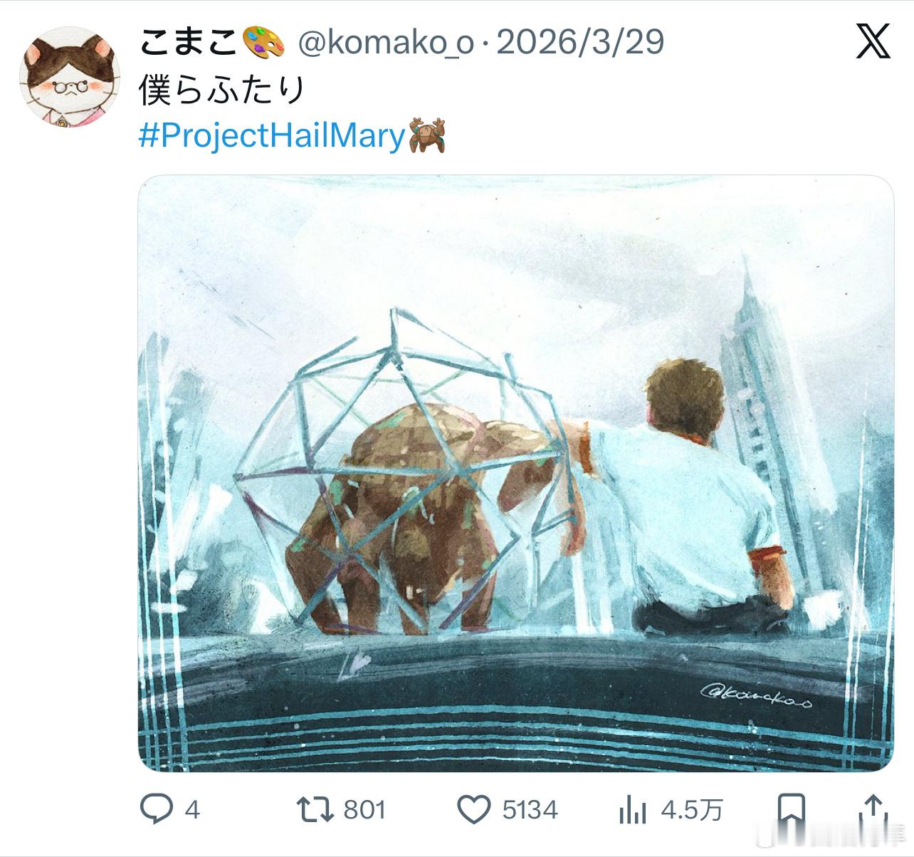 推特画师@ komako_o 给《挽救计划》绘制的二创插画,温暖的画风,很治愈。