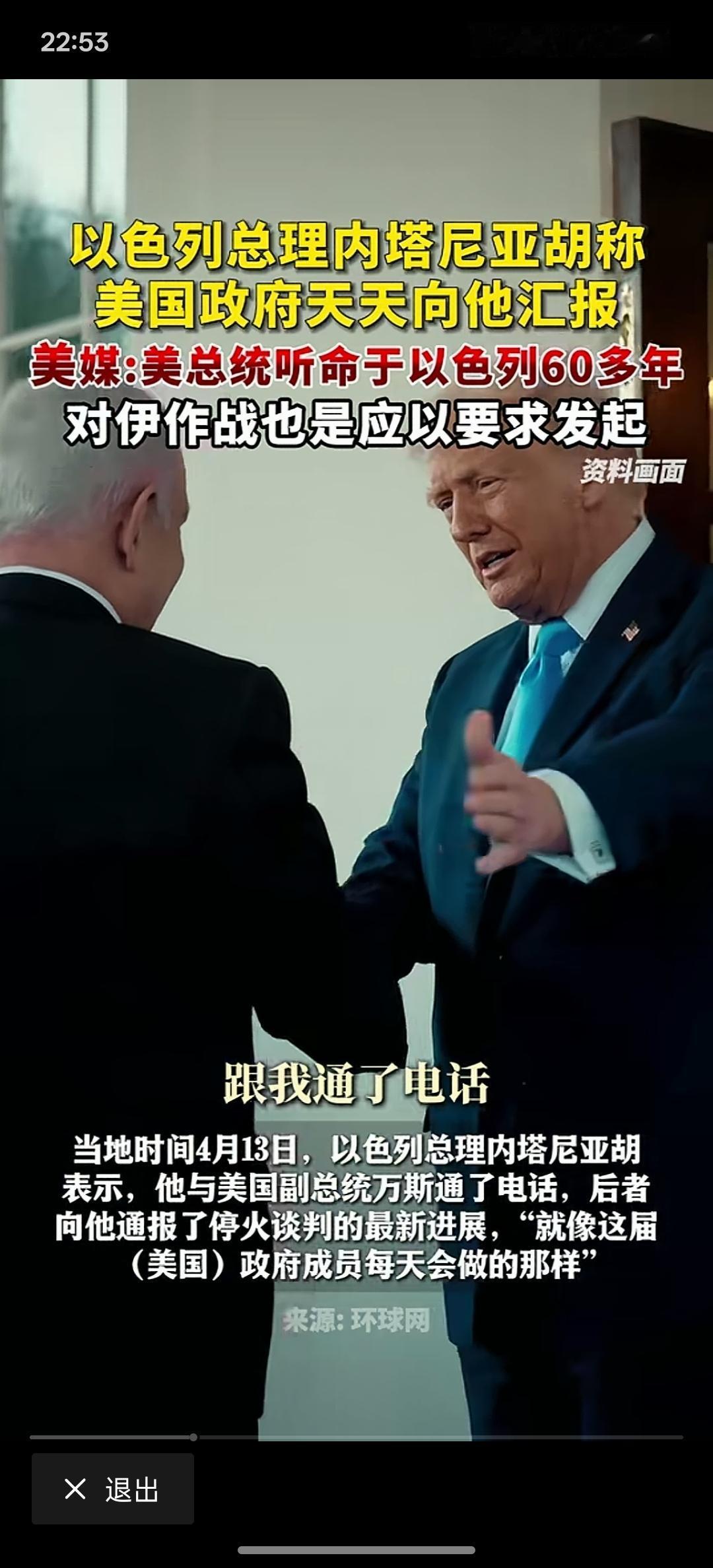 美国真的被犹太资本控制了,关于美国与伊朗的谈判,内塔尼亚胡说,美国政府天天向他报告,特朗普看到这样的言论情以何堪,美国的脸上挂得住吗?根据美国媒体发布的消息称,美国总统听命于以色列60多年!感觉这美国就被以色列掌控一样,一个美国世界超级大国要向内塔尼亚胡汇报,这是什么样的?这不就是领导跟下属的关系吗?美国,在世界还能立足吗?