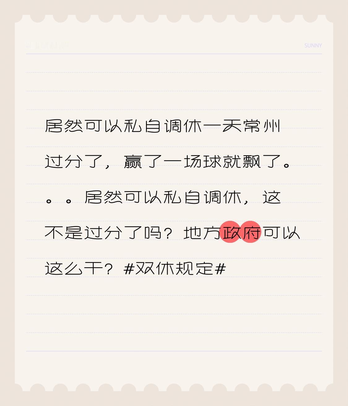 居然可以私自调休一天 常州过分了, 赢了一场球就飘了。。。 居然可以私自调休,
