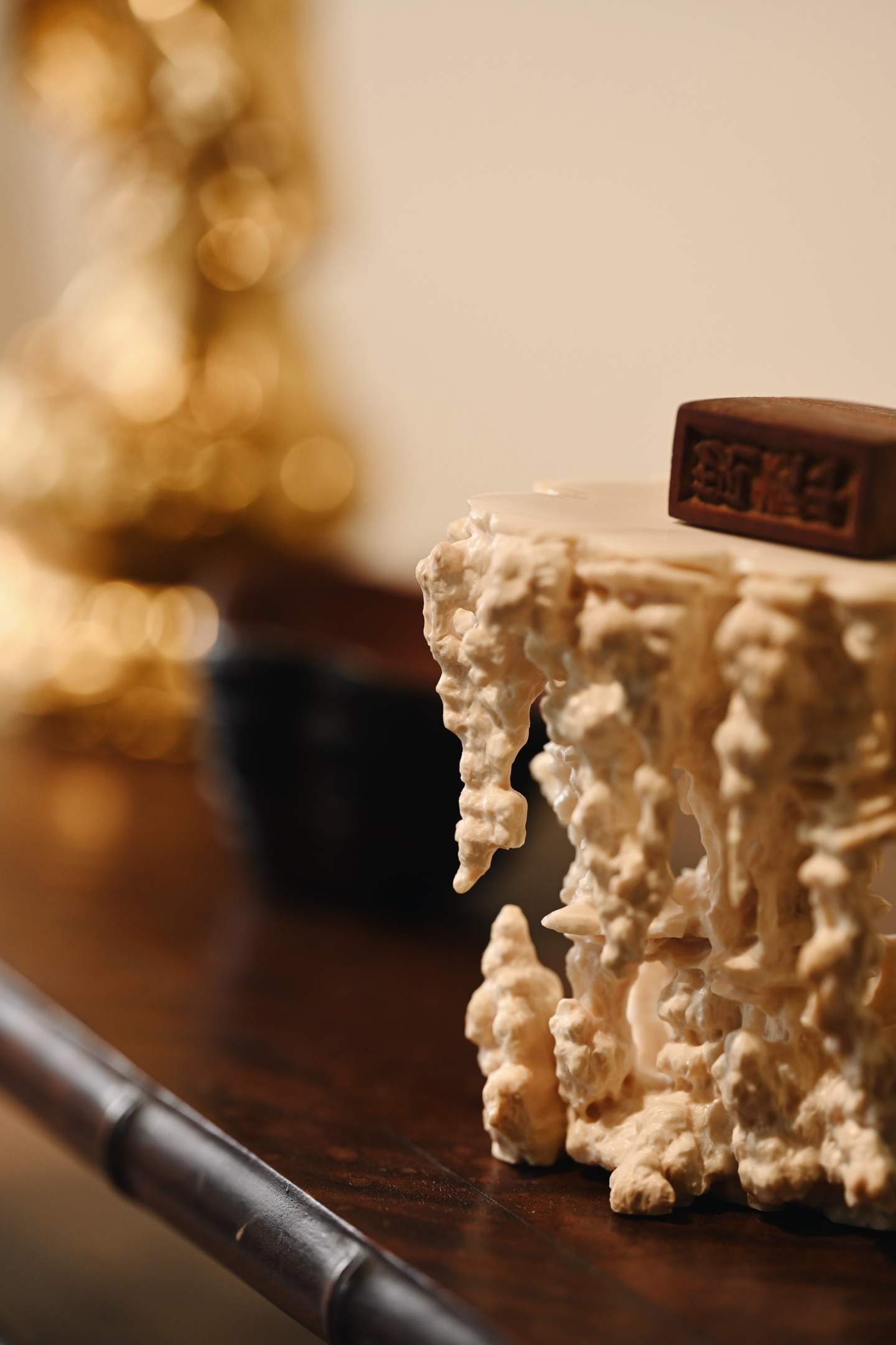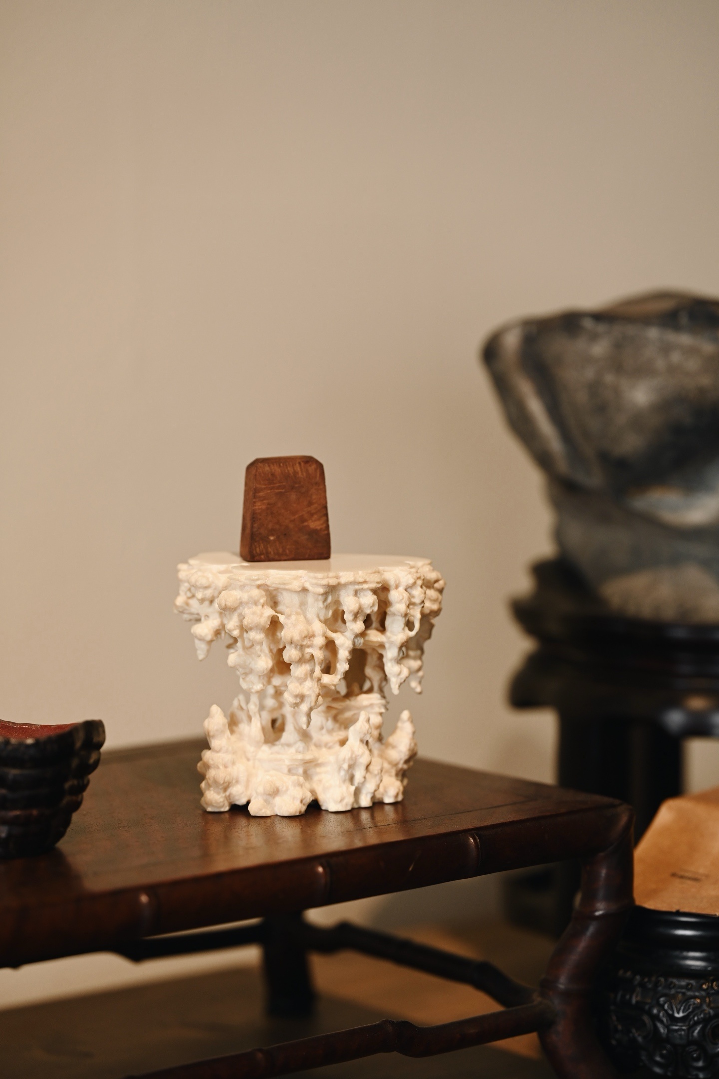 猛犸 | 石趣 底座取料上乘,依料就势,造型稳重大气,镂空细节疏密有致,雕刻层层
