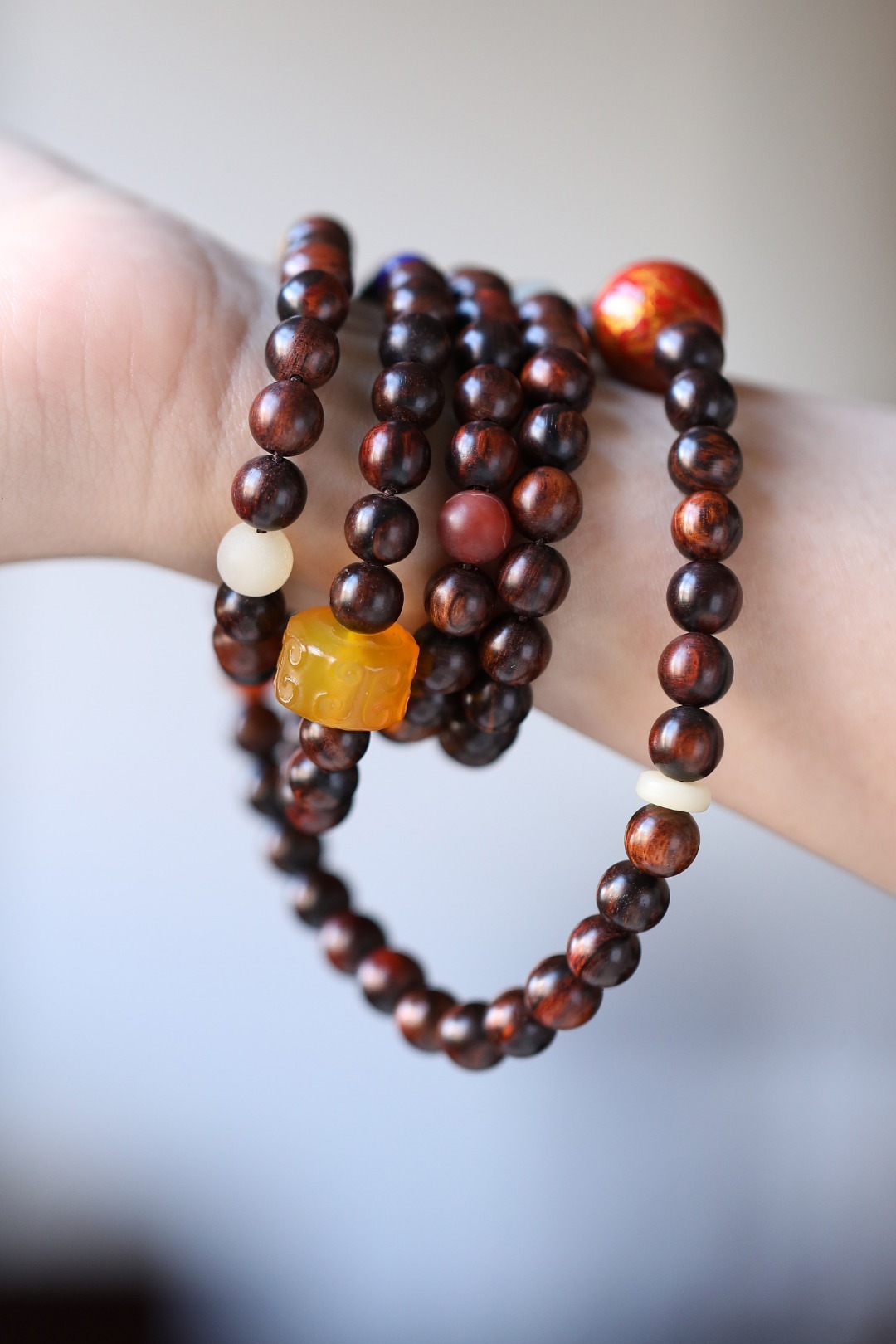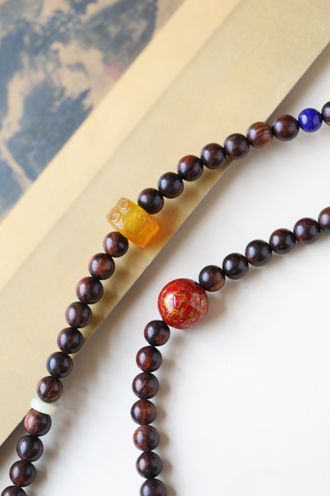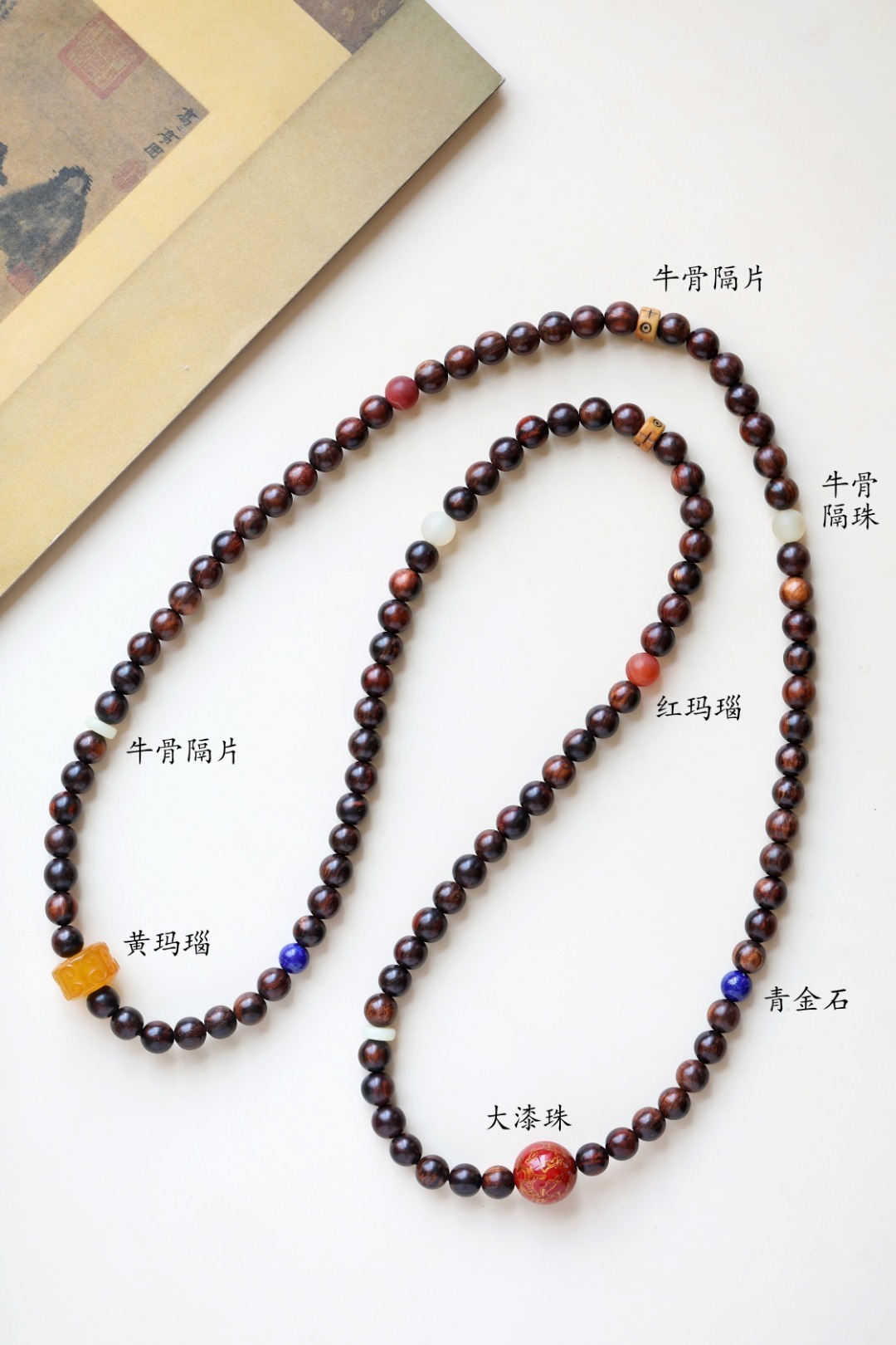 配件:青金石、黄玛瑙、牛骨隔片、红玛瑙、大漆珠、牛骨隔珠 海黄原创【乔楚】8mm108颗