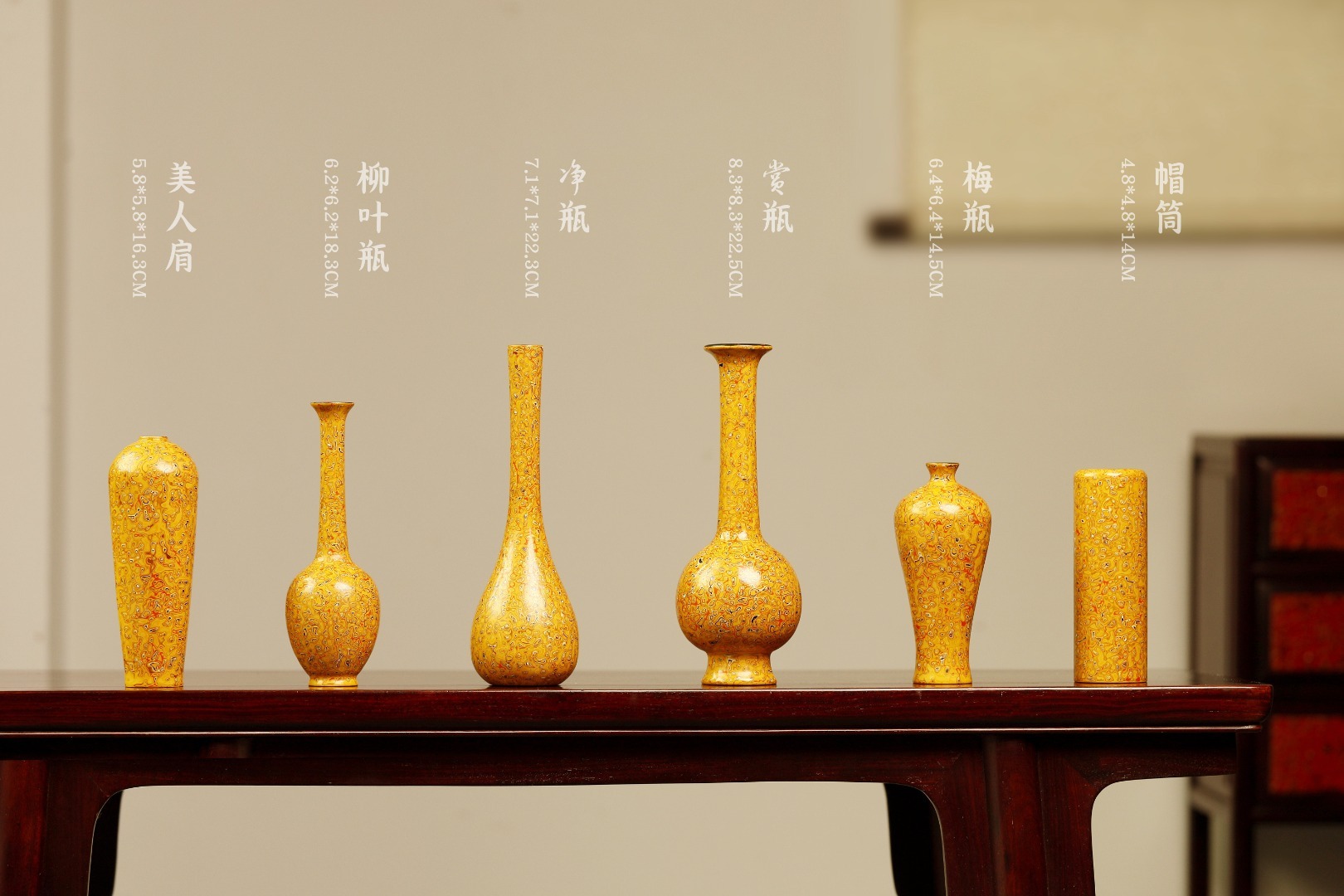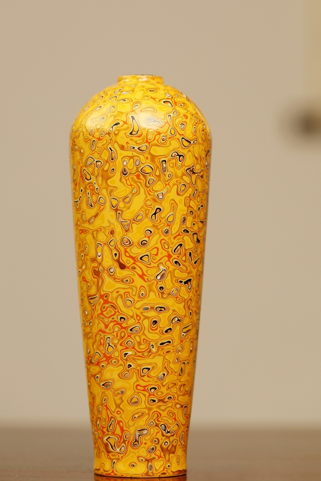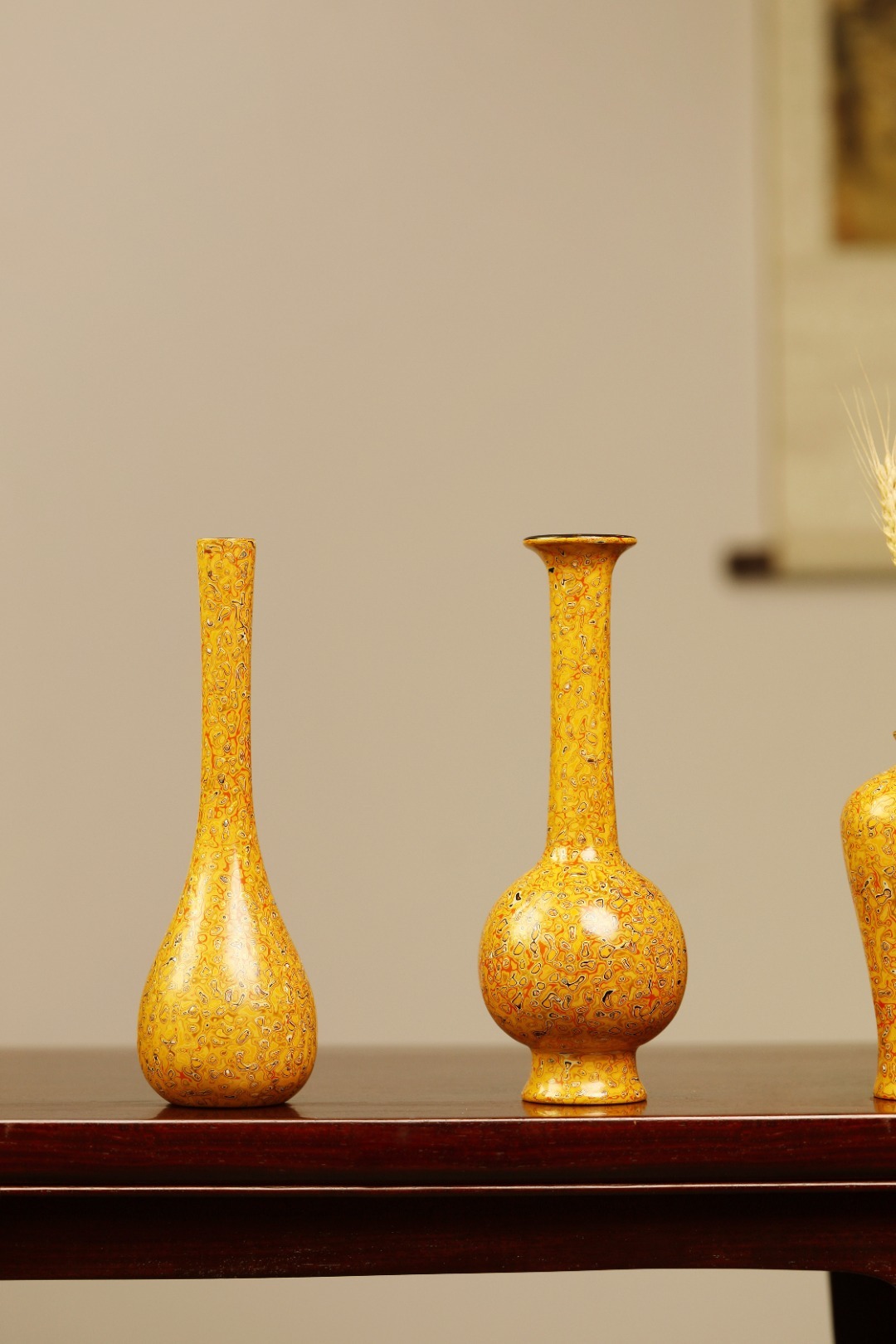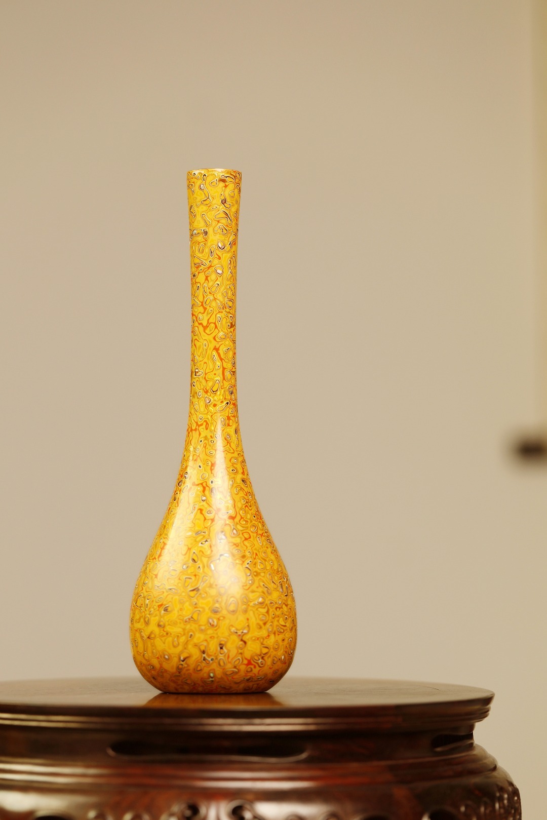 大漆 | 琥珀黄·花器承循传统非遗工艺,髤饰犀皮漆;入案头增色添彩,历久弥新。
