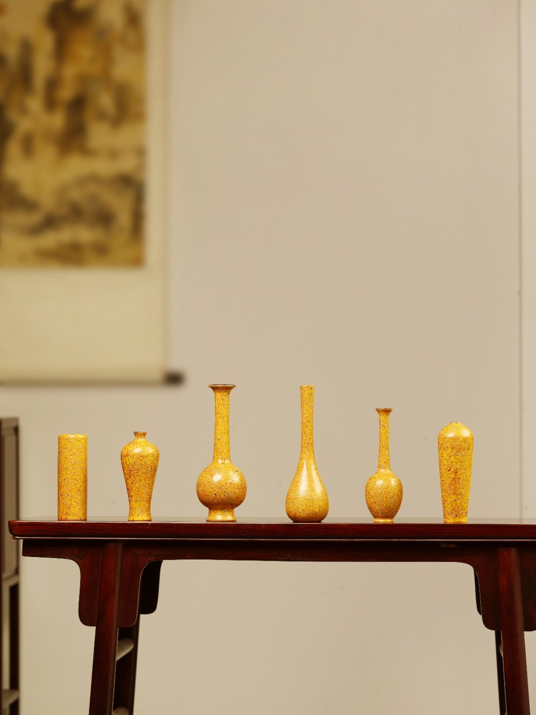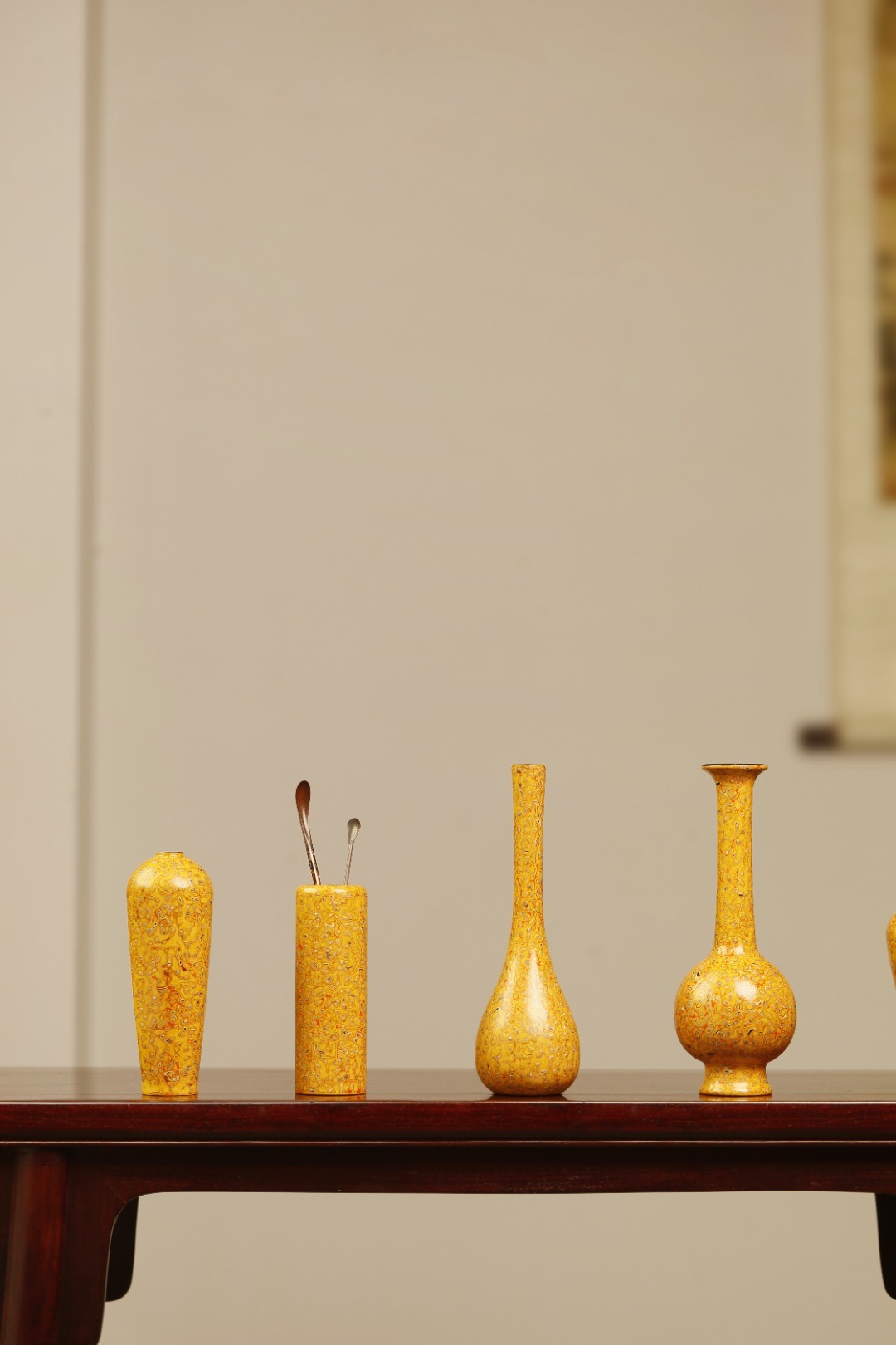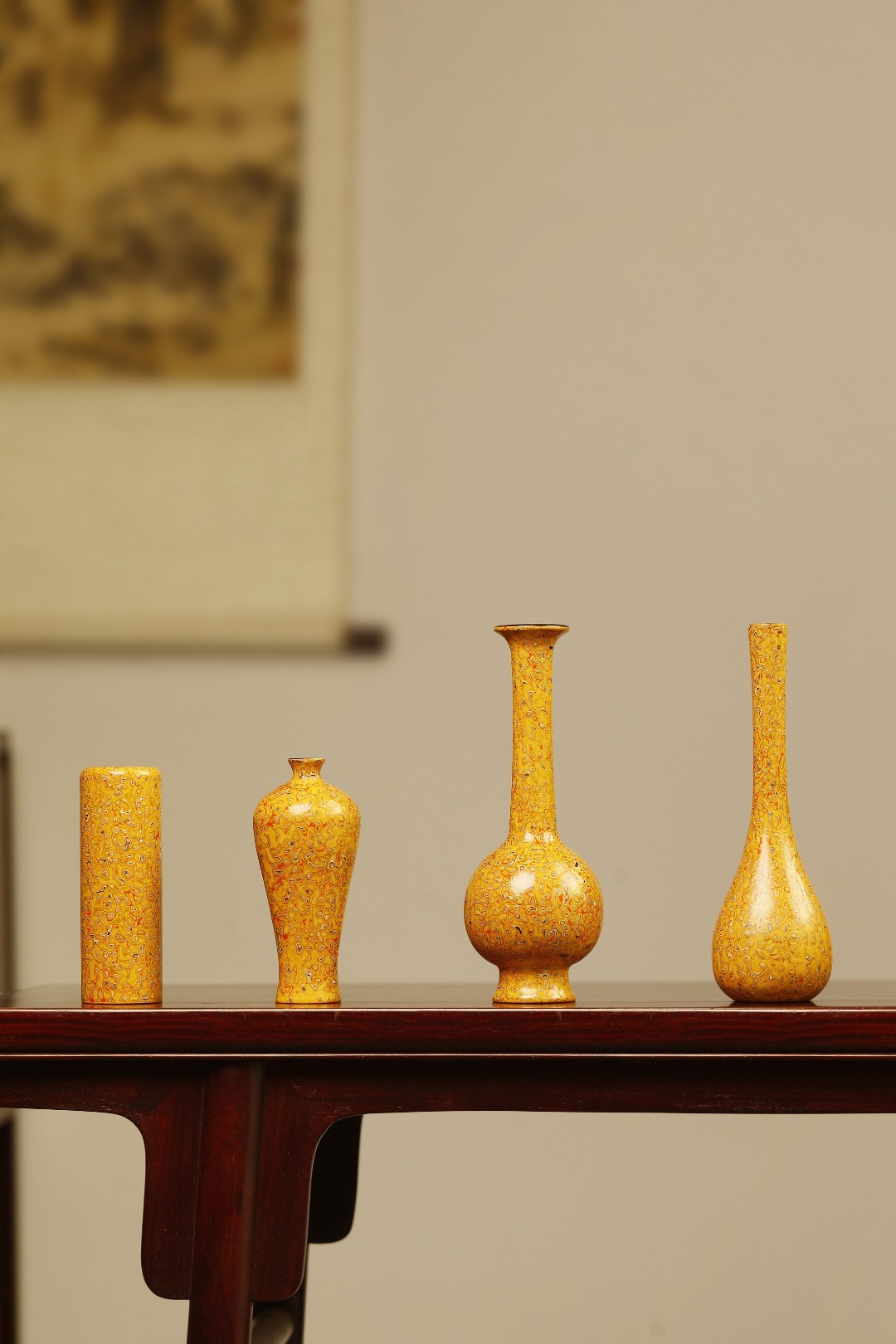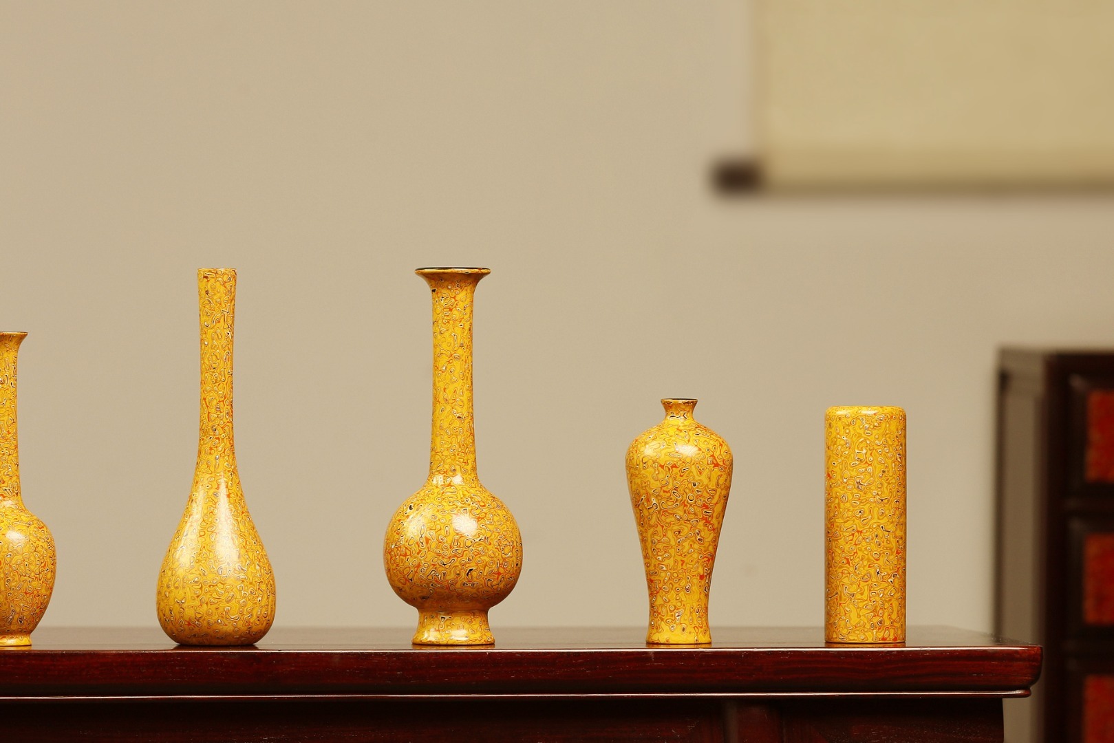大漆 | 琥珀黄·花器承循传统非遗工艺,髤饰犀皮漆;入案头增色添彩,历久弥新。
