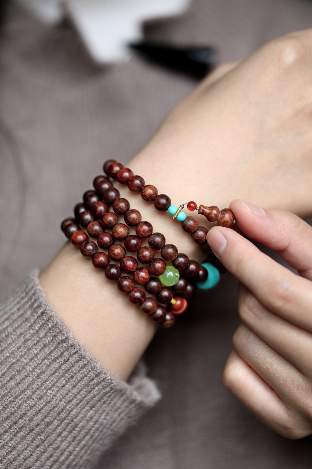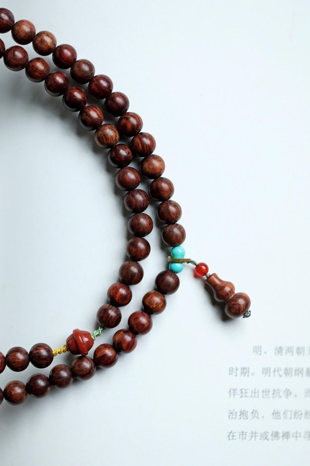 海黄原创【千容】7mm108颗油梨老料油润光泽,形制高雅,其降香浓郁,不由为之折