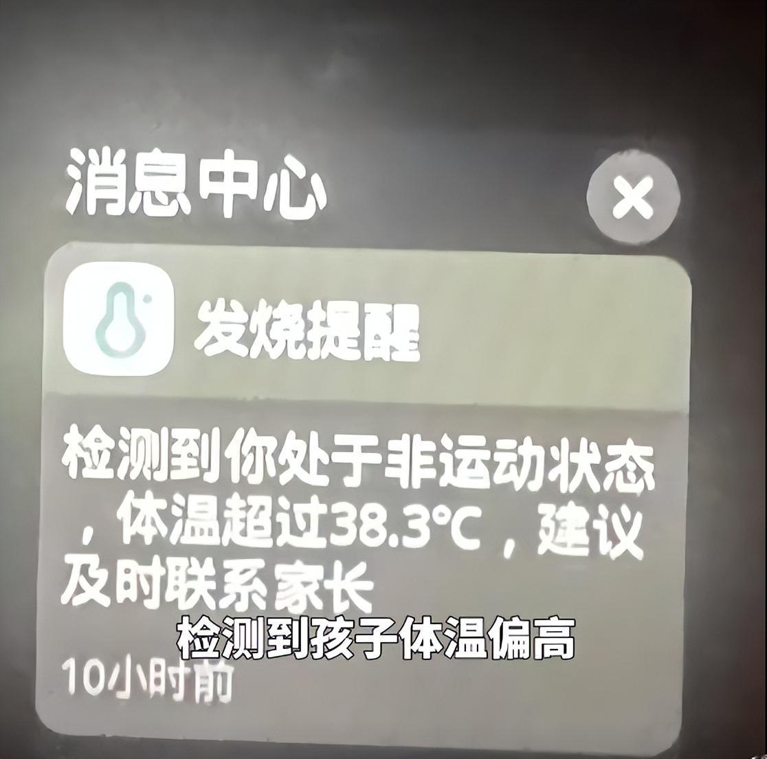 结果半夜,手表突然给她发了条短信。打开一看,是手表自动检测到孩子在非运动状态下体温偏高,提示可能发烧了