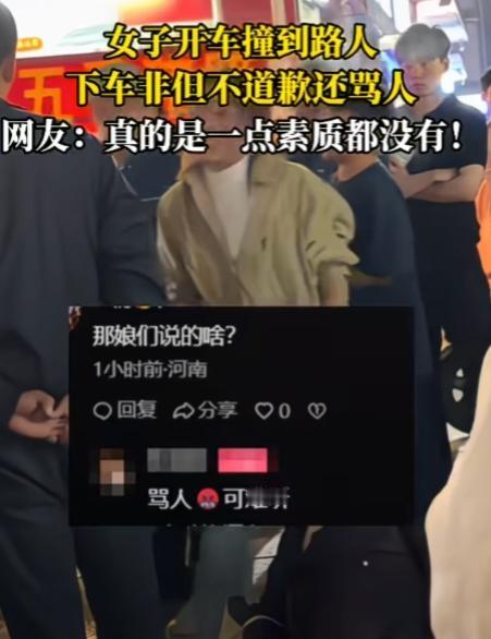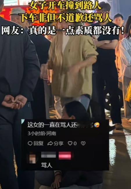 这不是素质问题,这是完全没底线! 一女子开车撞到路人后,下车非但不道歉还骂人,