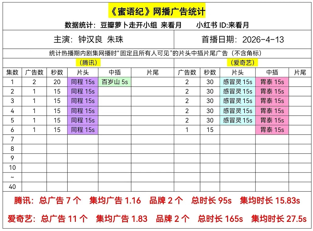 4月14日在播广告:鳞月绮记3广,白日提灯、蜜语纪1广,冰湖重生 八千里路云和月继续🥕