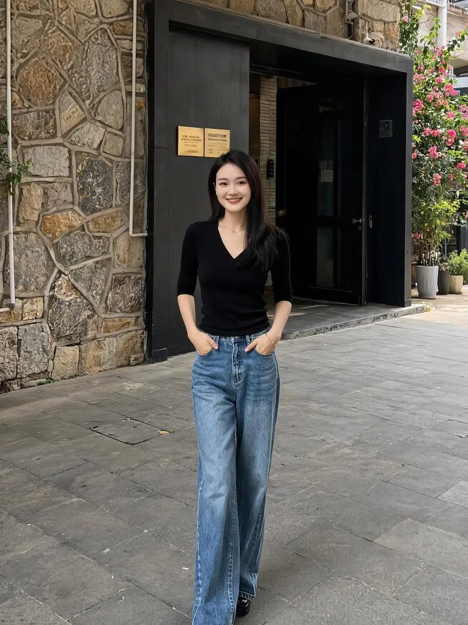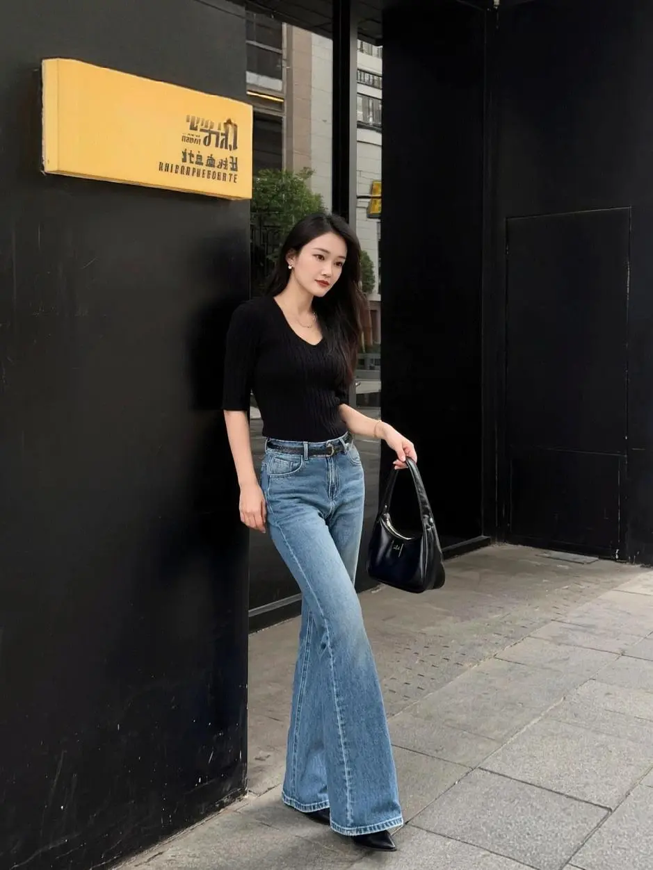 紧身牛仔裤 牛仔裤穿搭 牛仔裤 弹力紧身喇叭牛仔裤 视频同款