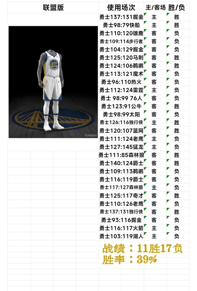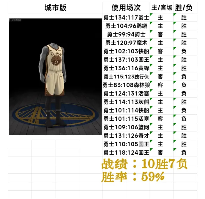 有网友统计了勇士本赛季四款球衣各自的胜率,不信邪不行啊勇士vs快船金州勇士库里金州勇士