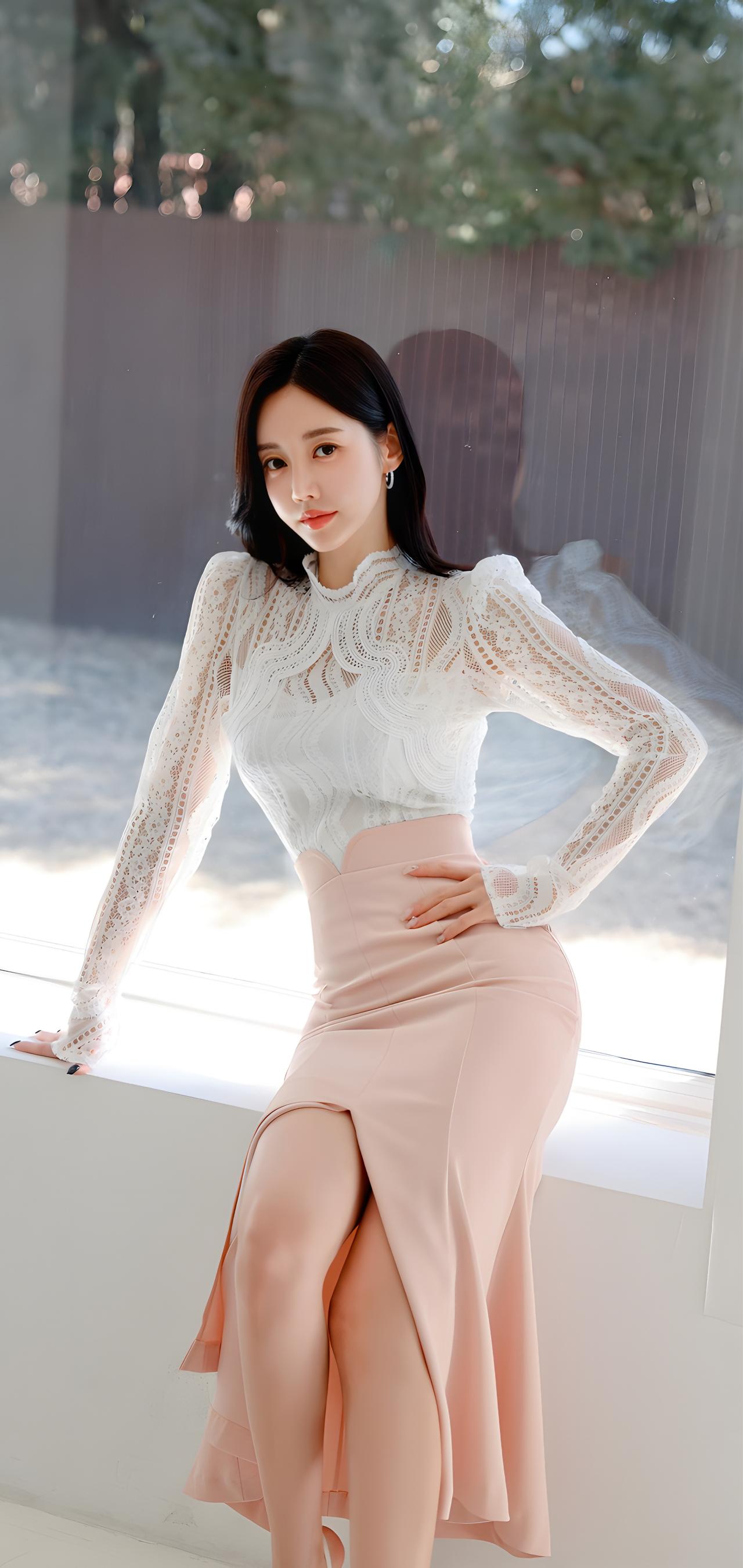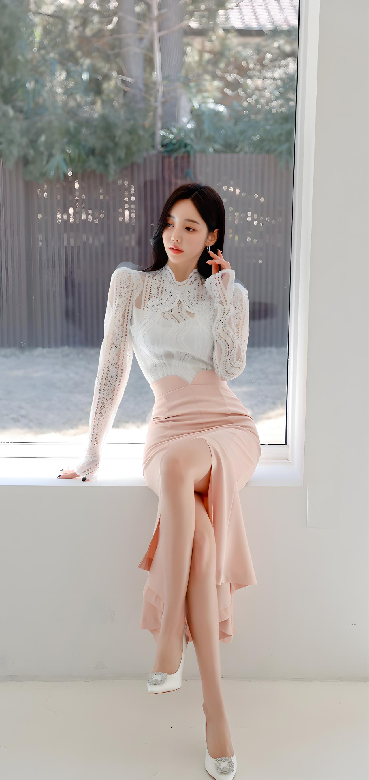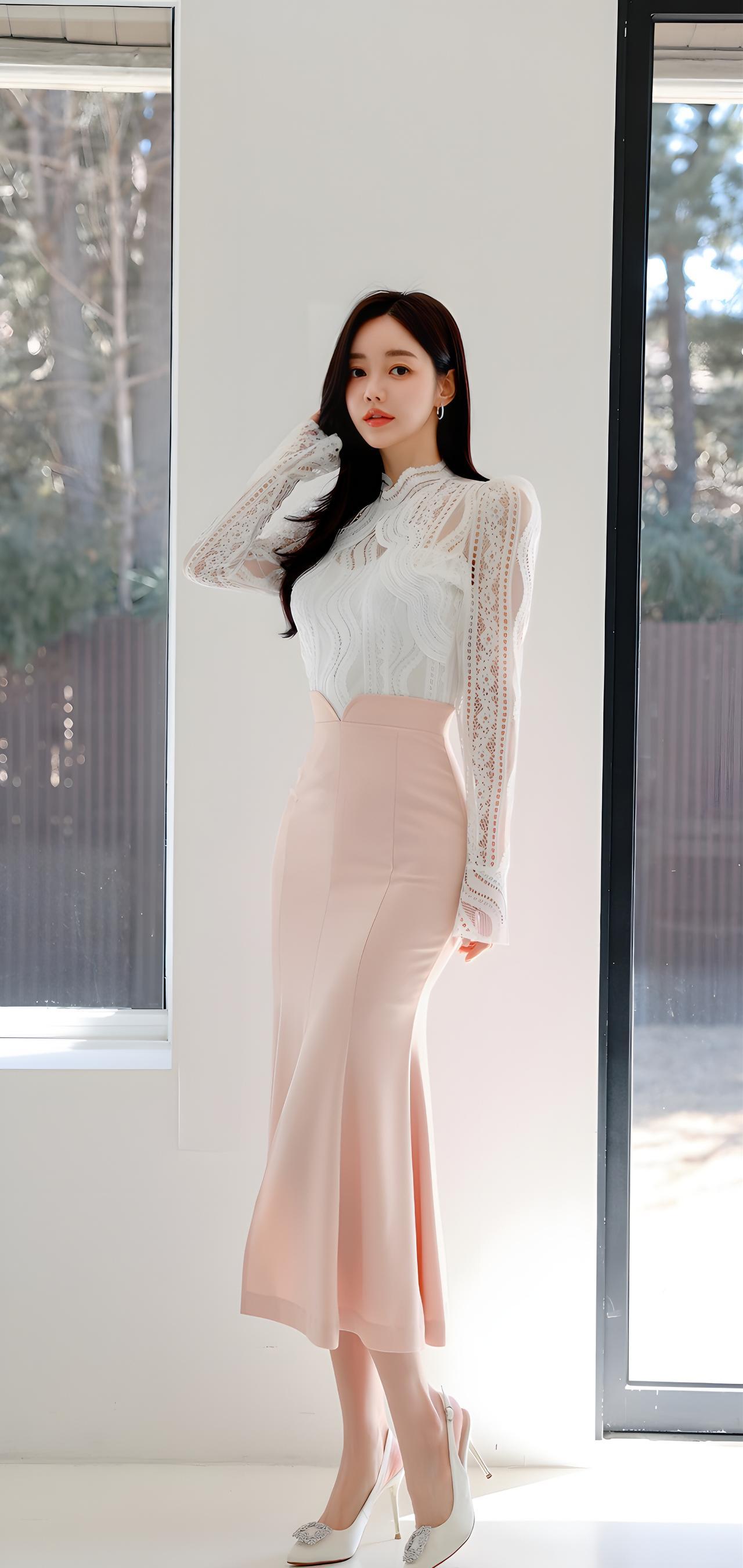 优雅蕾丝衫搭配粉色长裙,尽显女性魅力!👗✨