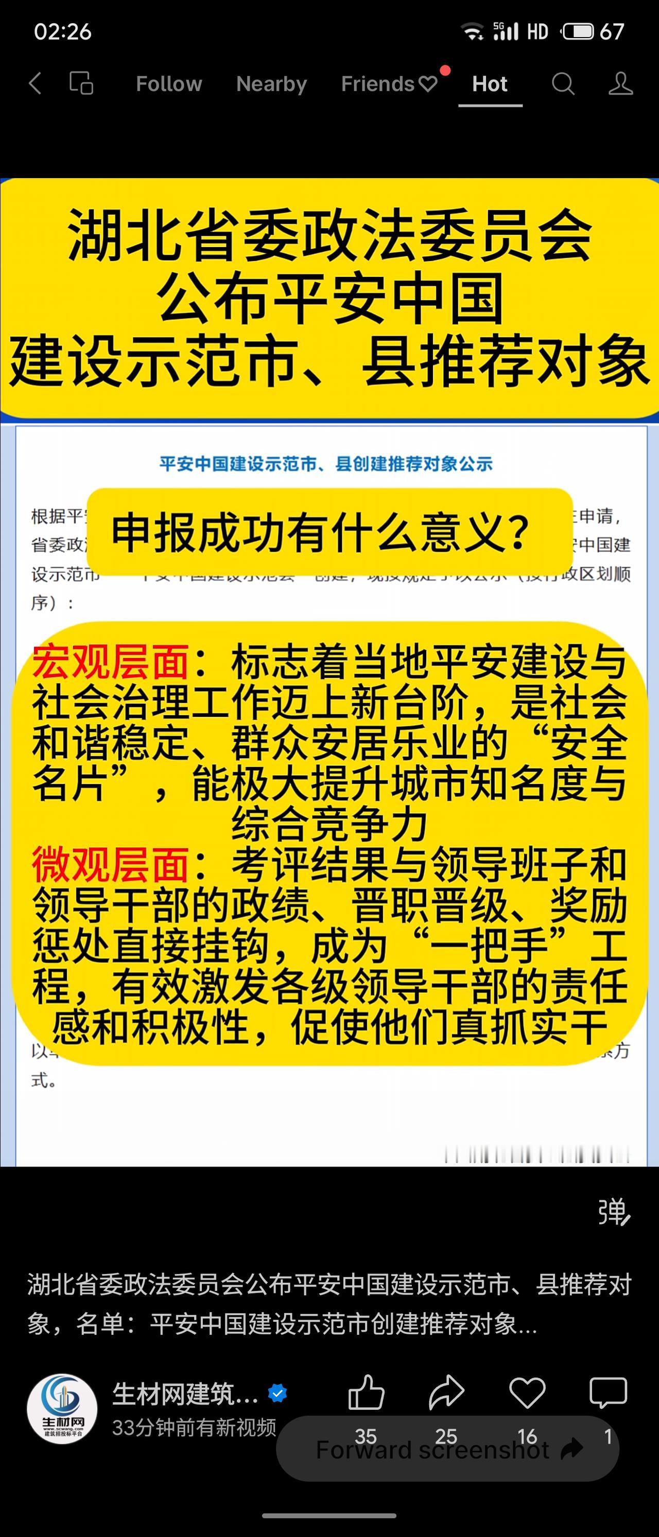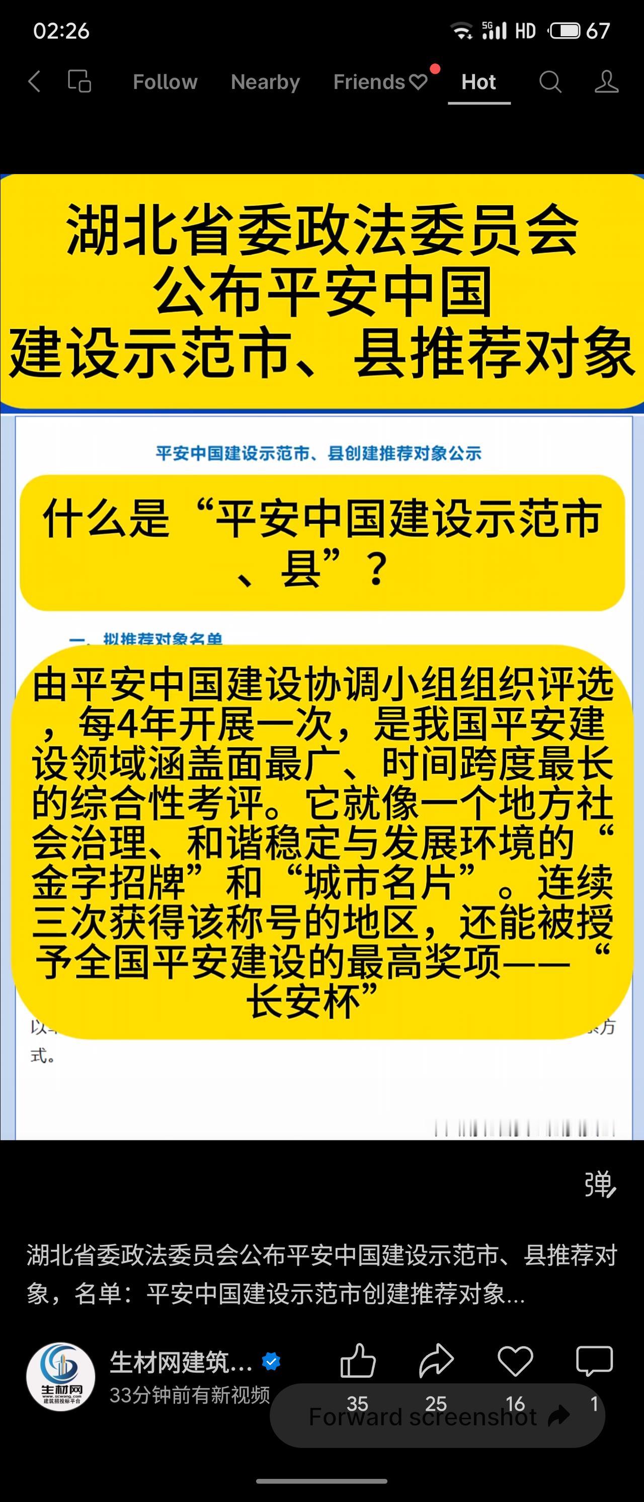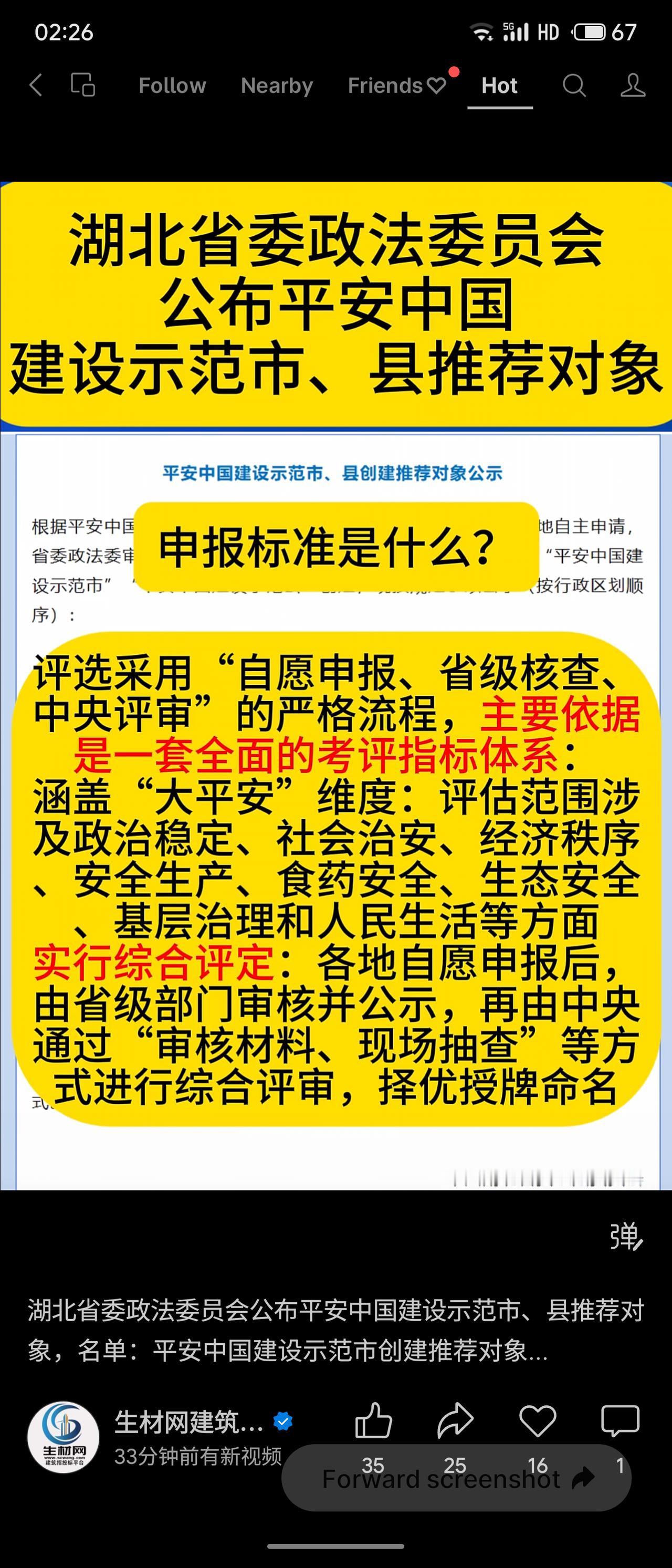 湖北省委政法委公示2021—2025年度“平安中国建设示范市、县”推荐对象:武汉市、宜昌市、黄石市、黄冈市拟推荐为示范市;武昌区、保康县等8地拟推荐为示范县。该评选涵盖政治、治安、安全等多维度,结果与领导干部考核挂钩,旨在打造城市“安全名片”,提升综合竞争力。公示期4月13日至17日。