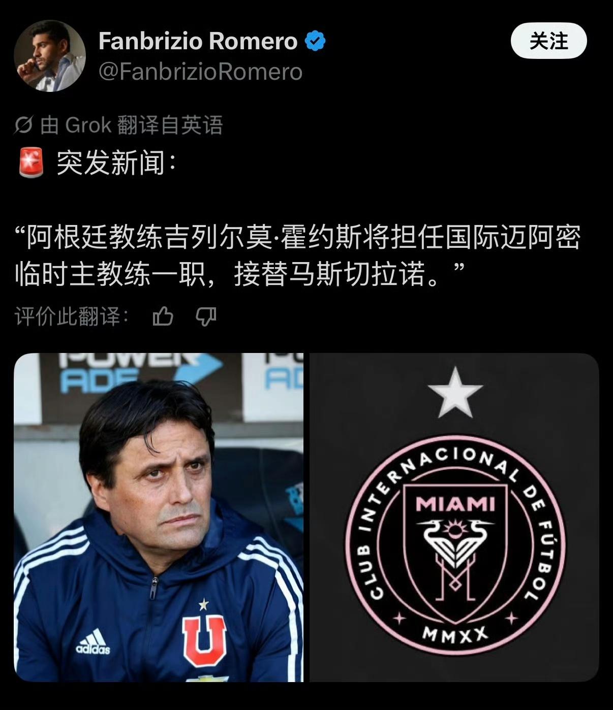 太突然了!迈阿密国际官方:马斯切拉诺因个人原因辞去球队主帅一职。