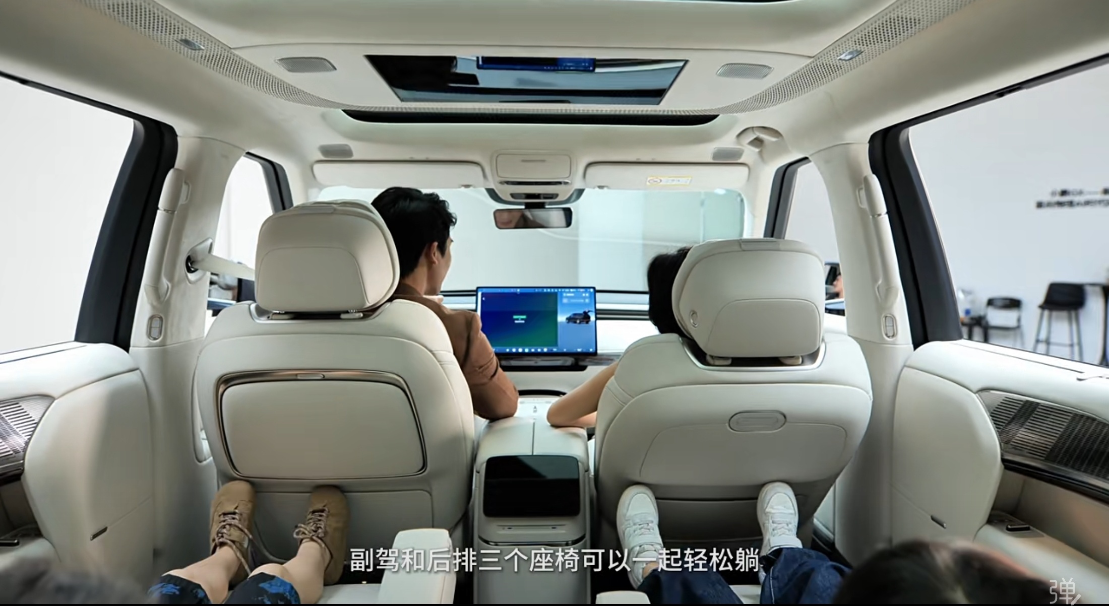 至于全车四把零重力座椅,这个宣传意义大于实际意义……不信你看小鹏官方视频,同时四座零重力的演示,二排即便是小朋友,也快顶腿啦?其实按X9的能力,折叠三排尾箱最大状态下,二排依旧可以双零重力的SUV车型,除了小鹏GX,恐怕还真没有对手?