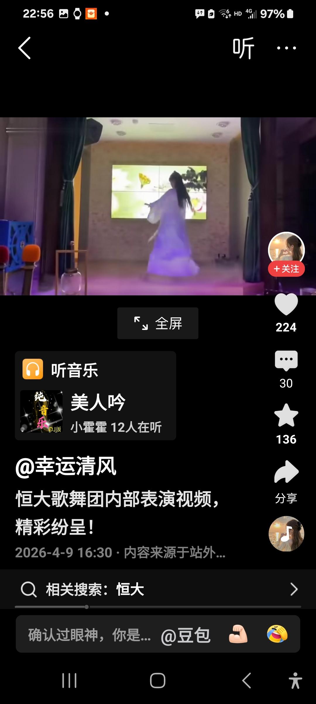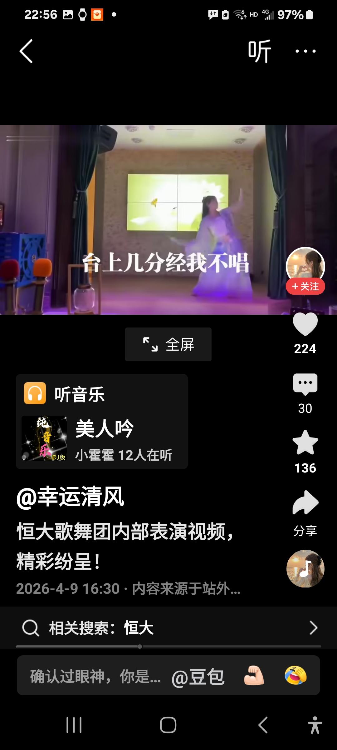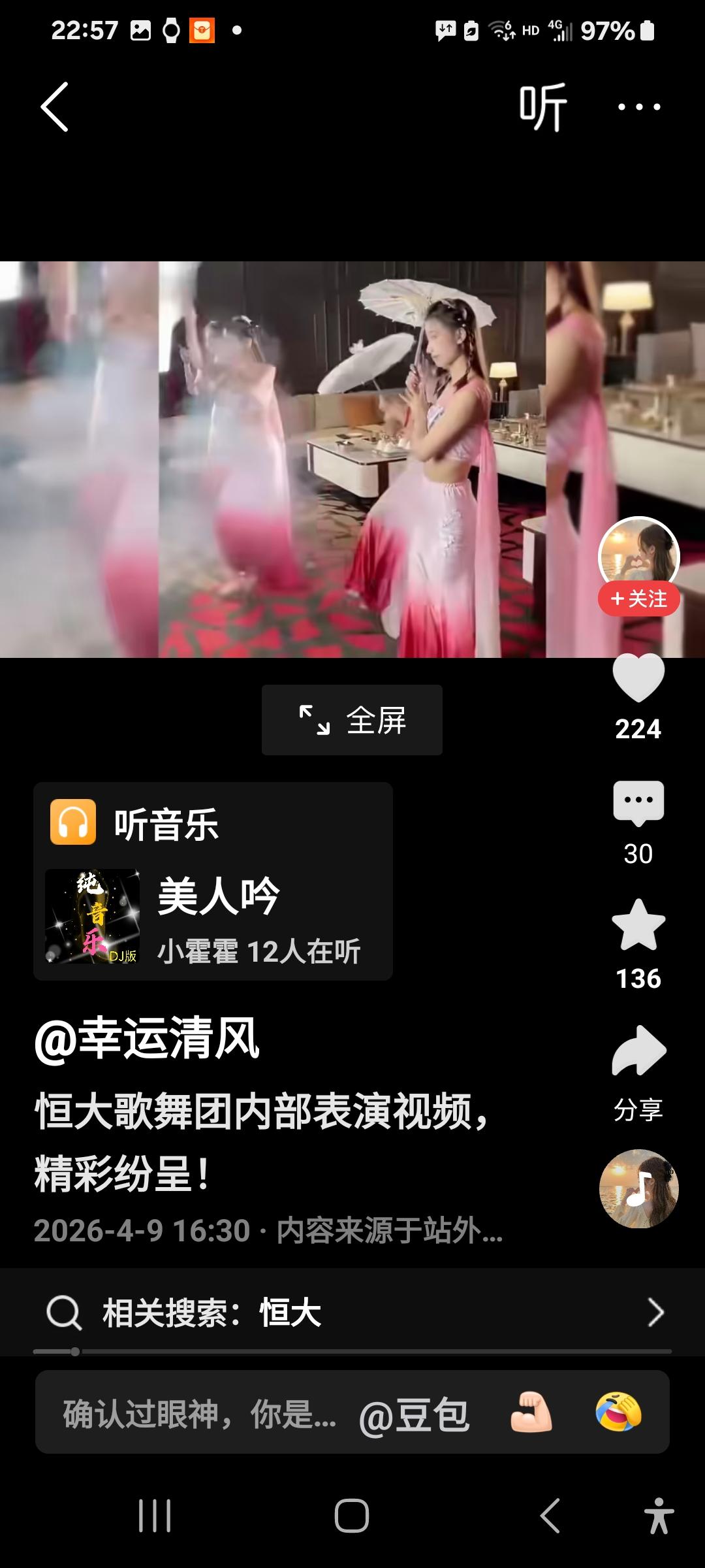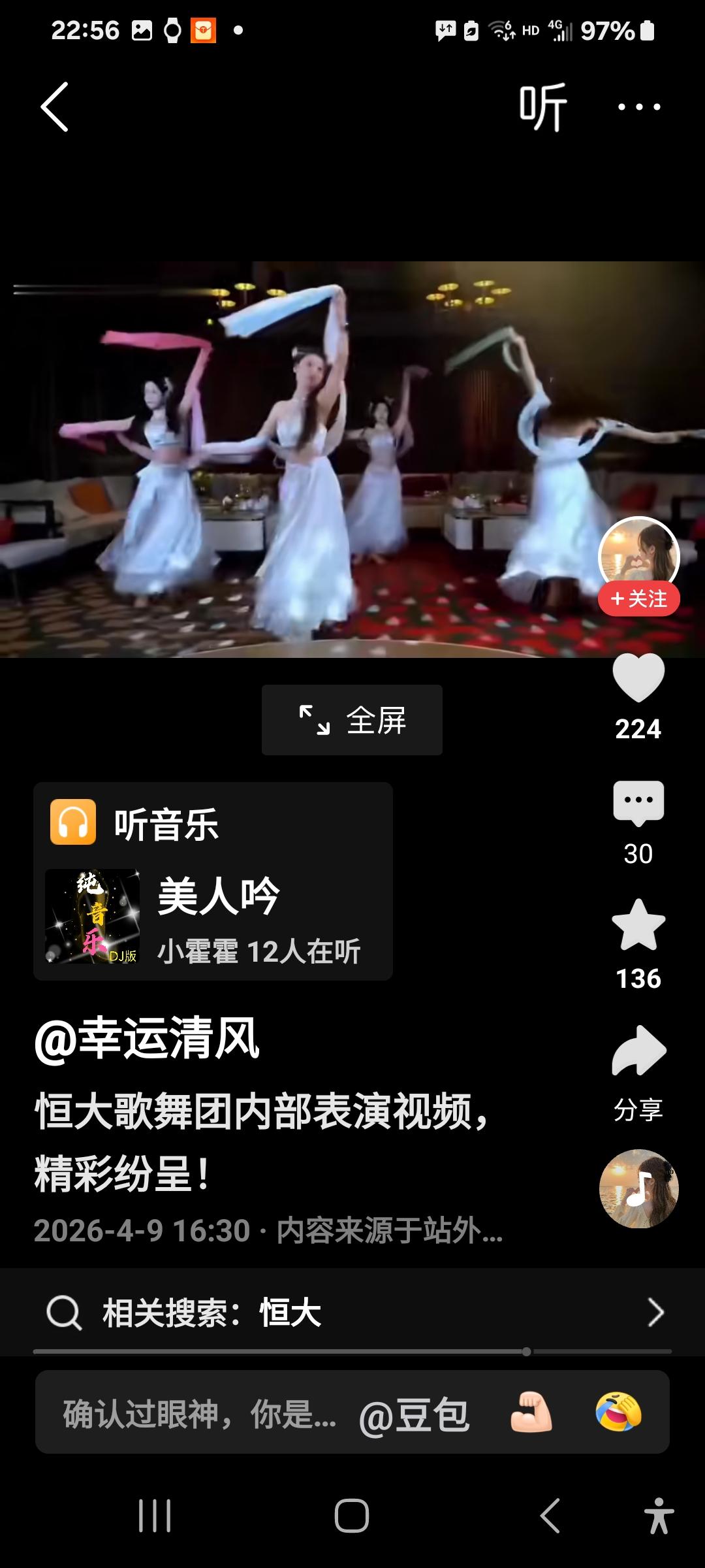 恒大歌舞团的演出,有人评价说水平极高,每个女演员功底都十分深厚,配之以美人吟,可