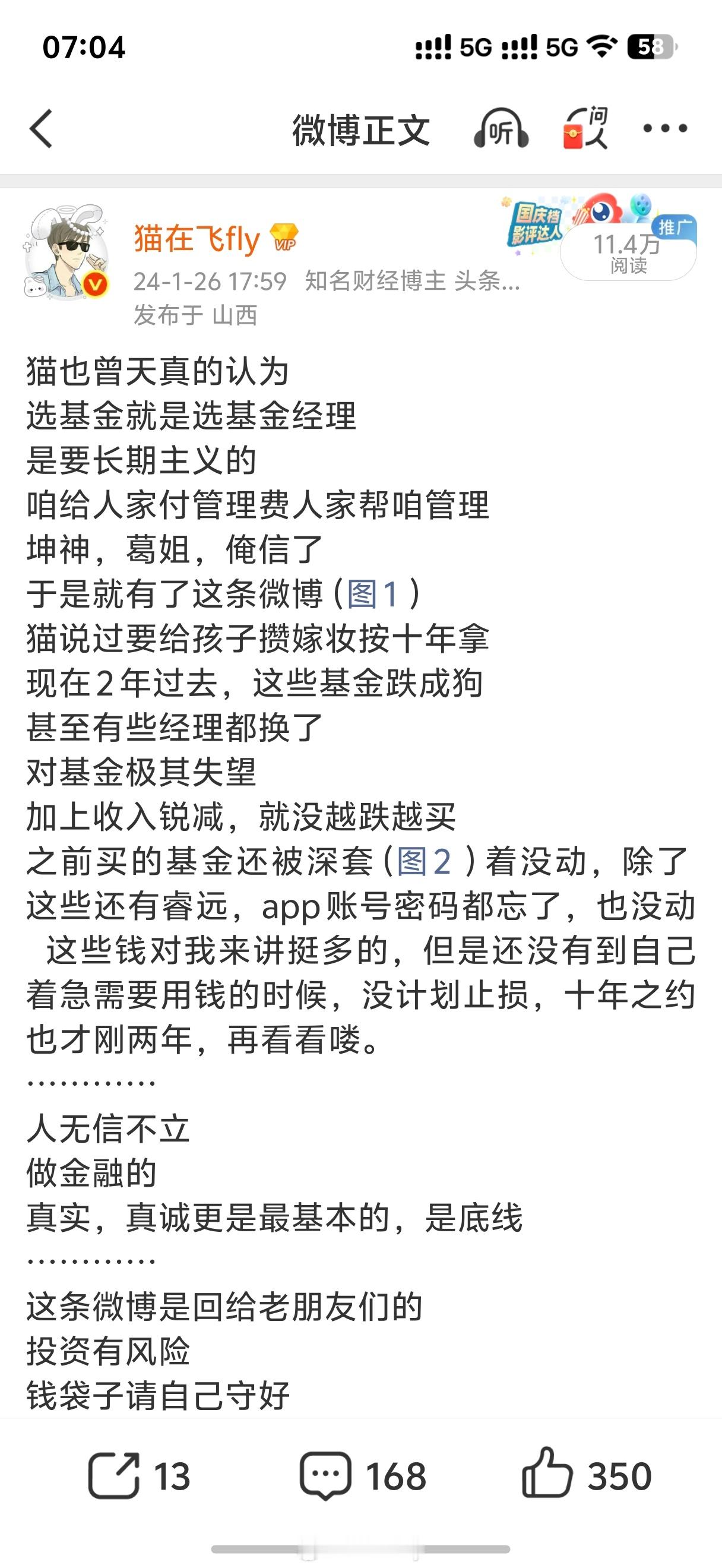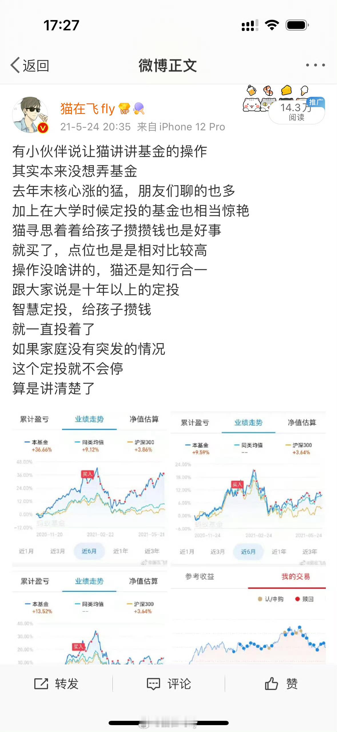 看到有小伙伴留言说之前跟风定投的睿远回本赚钱去看了下自己的也赚钱了…………赚钱了猫就撤了哈有始有终守住了和大家的约定以后不敢分享这种了…………话说回来傅老是真牛姜,还是老的辣
