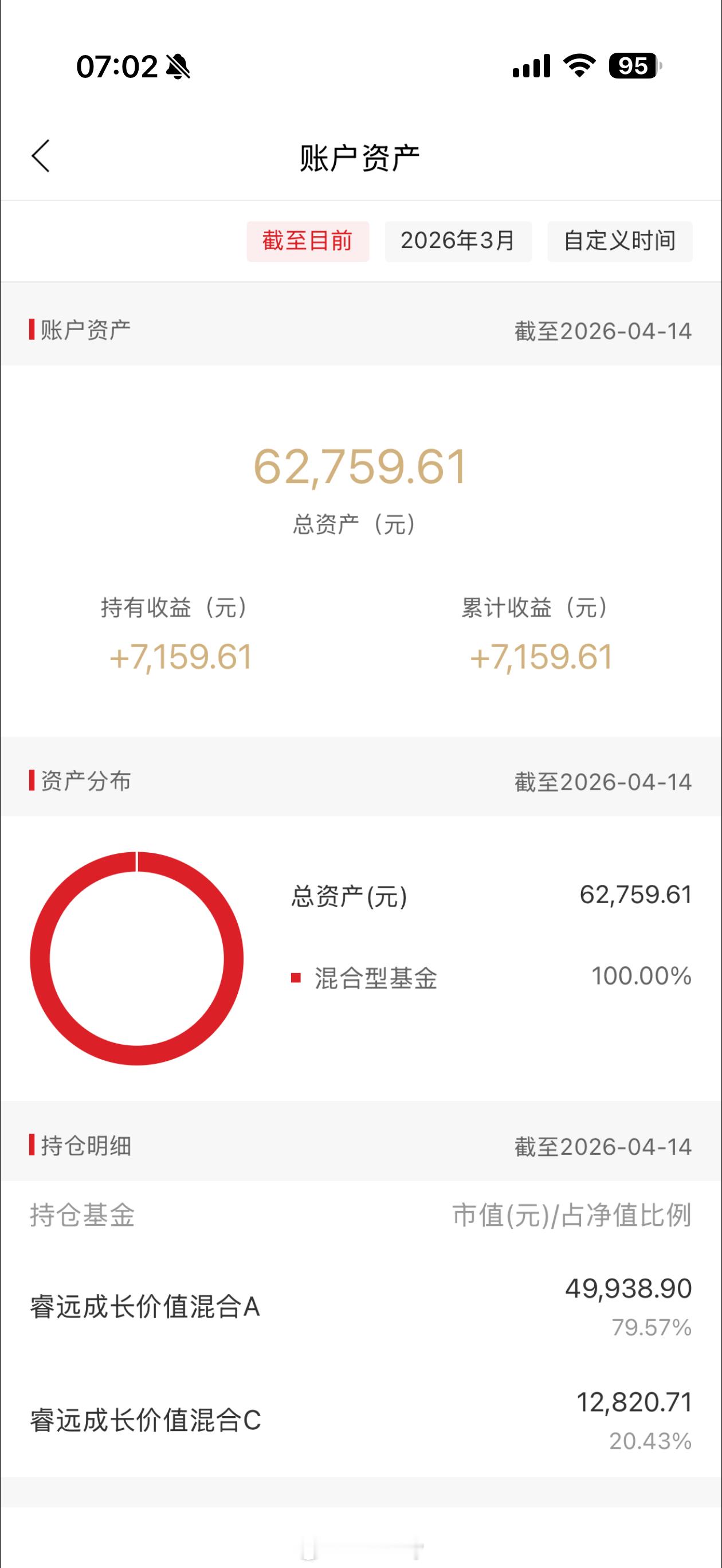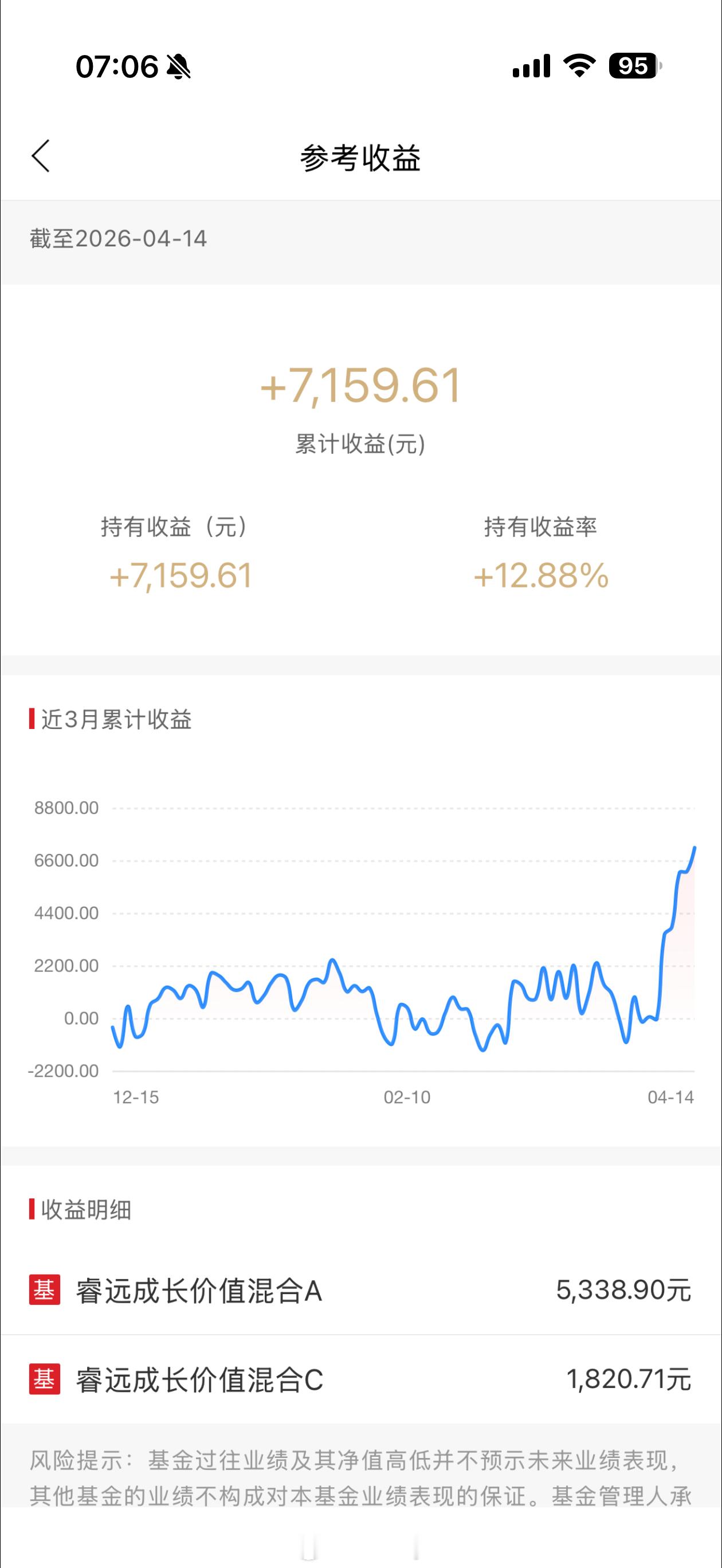 看到有小伙伴留言说之前跟风定投的睿远回本赚钱去看了下自己的也赚钱了…………赚钱了