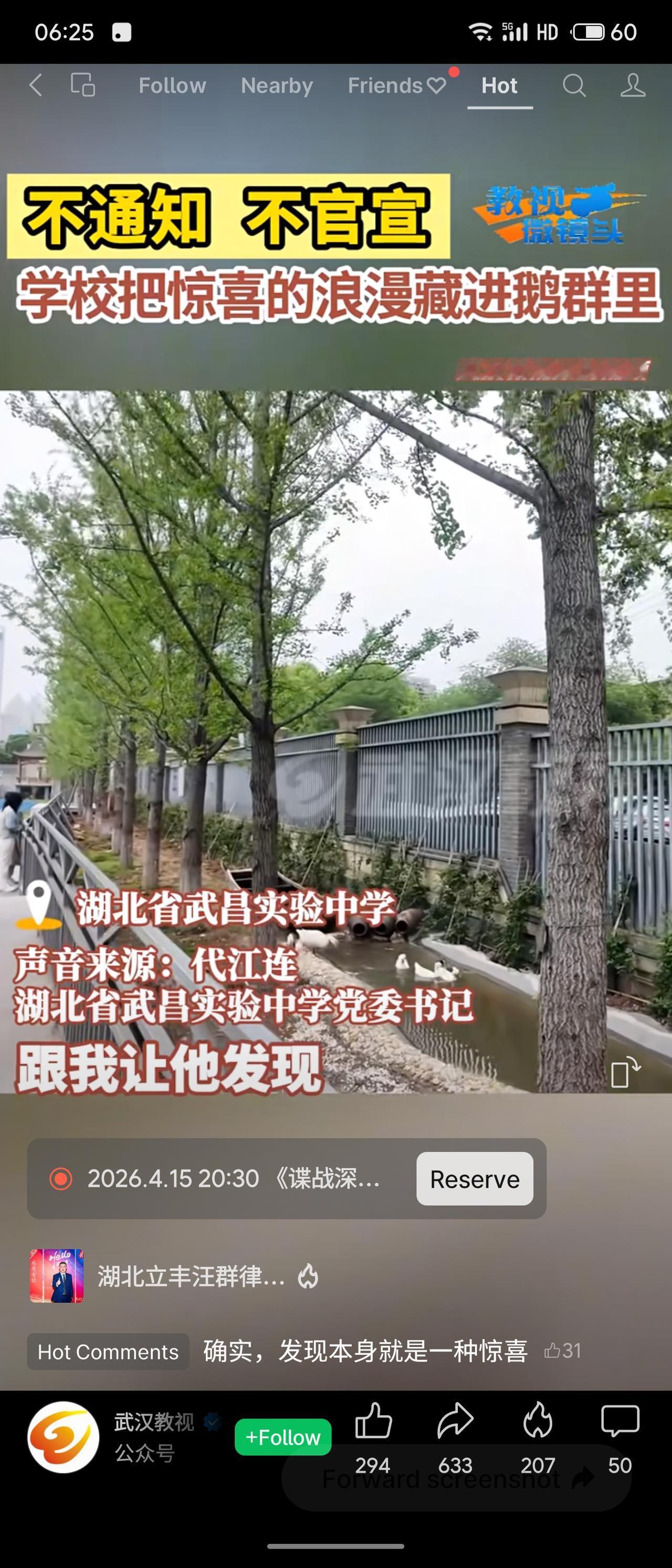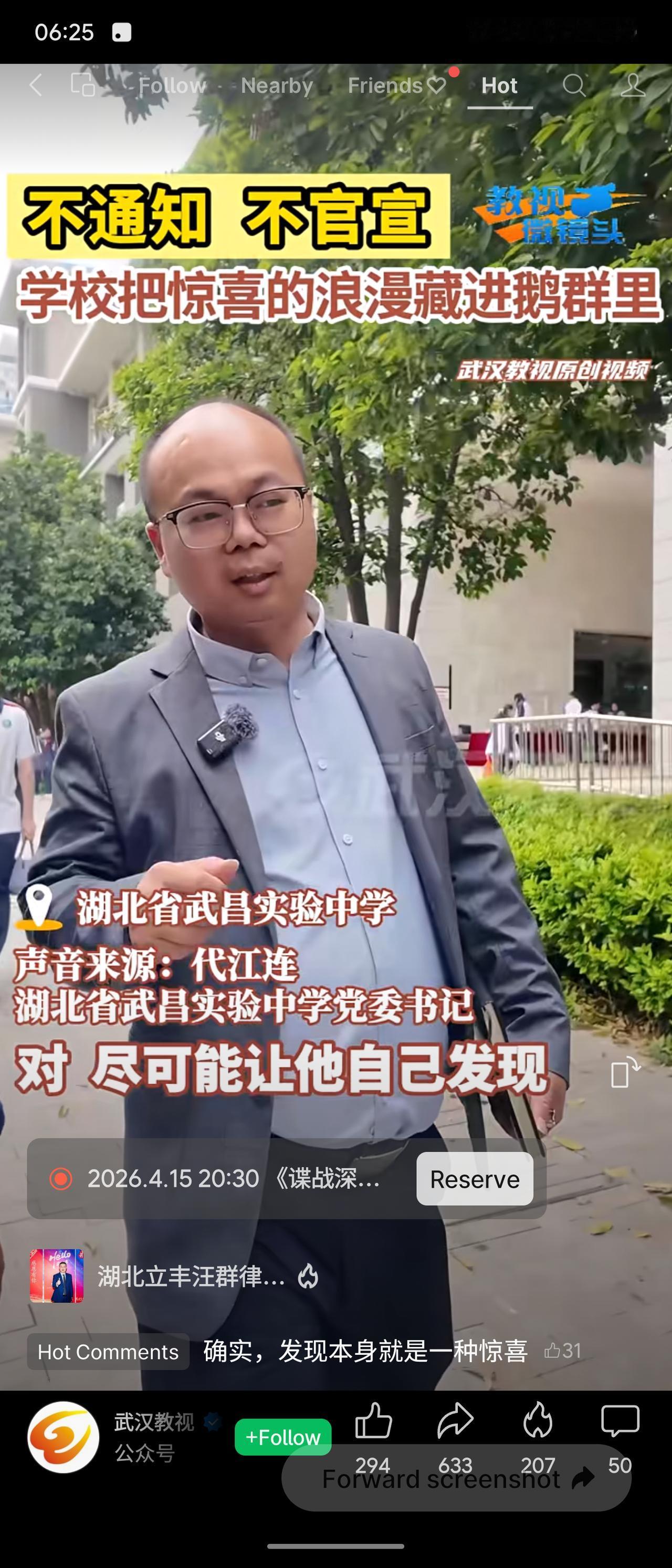 湖北省武昌实验中学不通知、不官宣,将惊喜藏在校园的鹅群里,让学生自己去发现。党委书记表示:“尽可能让他自己发现。”评价:这种无声的浪漫胜过千言万语,赋予教育以温度和诗意,让惊喜本身成为最好的礼物。
