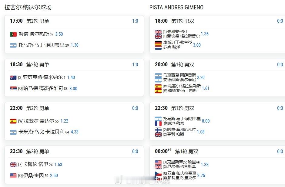 ATP500巴塞罗那站第二轮18:30 德米纳尔🇦🇺vs梅杰多维奇🇷🇸