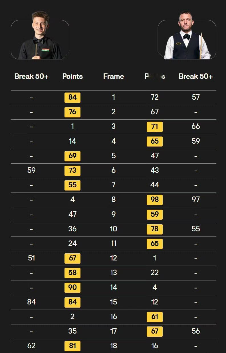 爆冷赢了奥康纳和杰米琼斯后,凭借多出的5000英镑,足以让他进入单赛季前四了。如果再度爆冷进入正赛第二轮,世界排名将挤掉乔丹布朗升至第64。乔丹布朗基本降级。