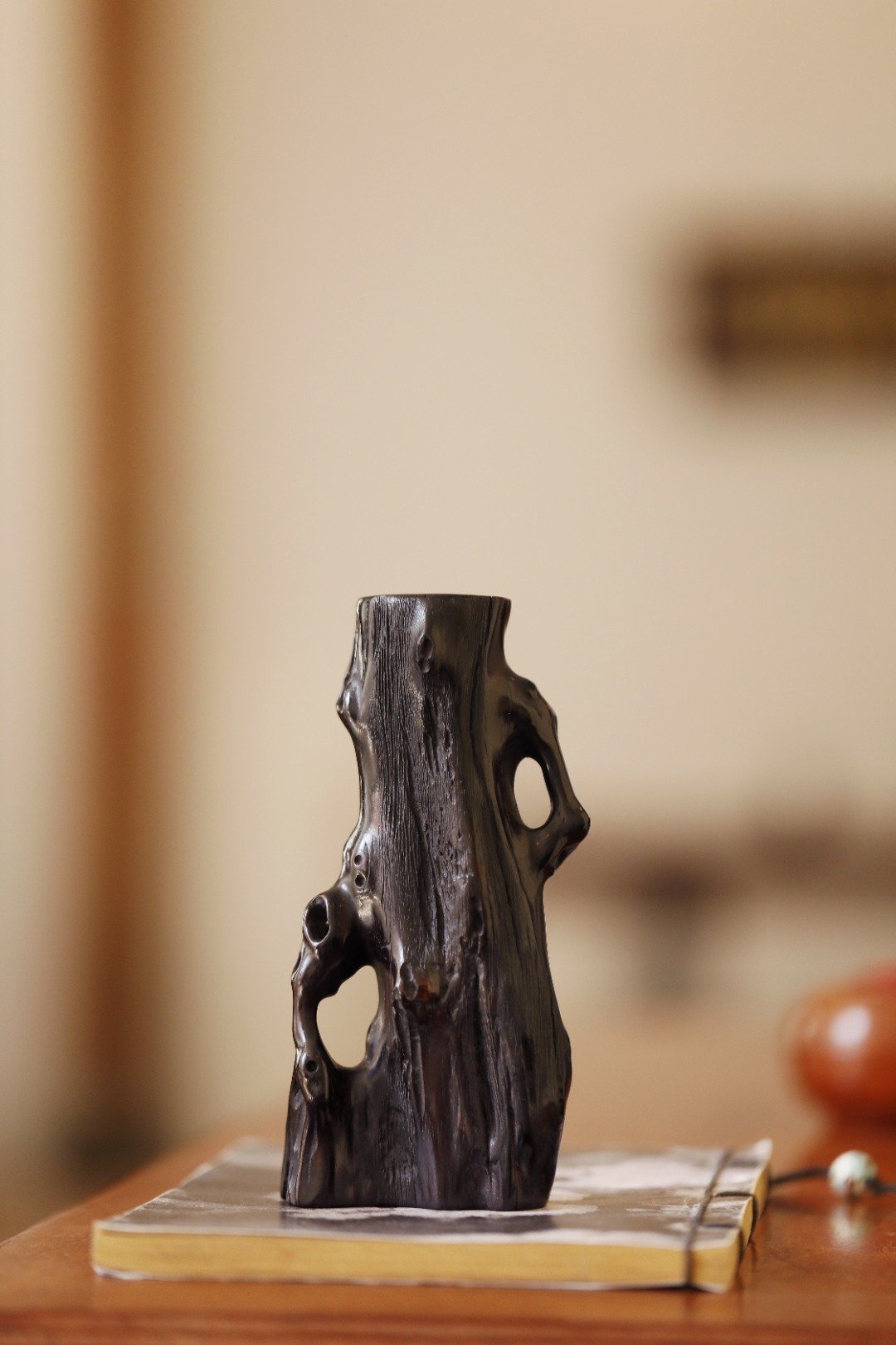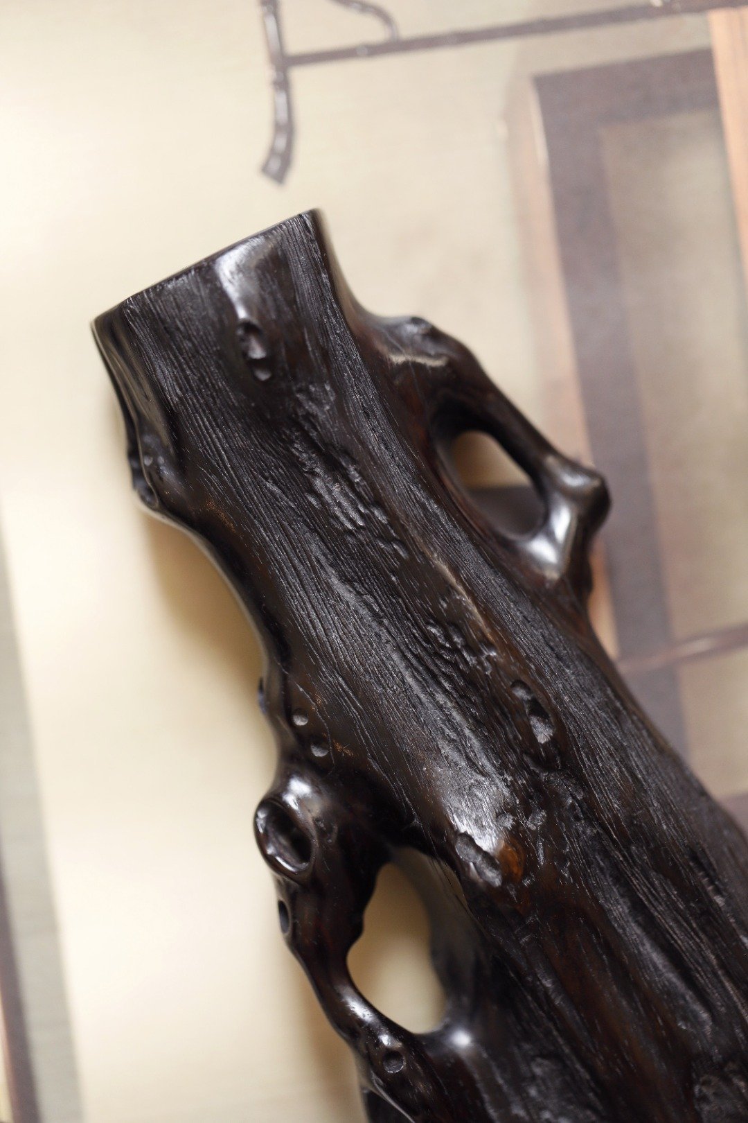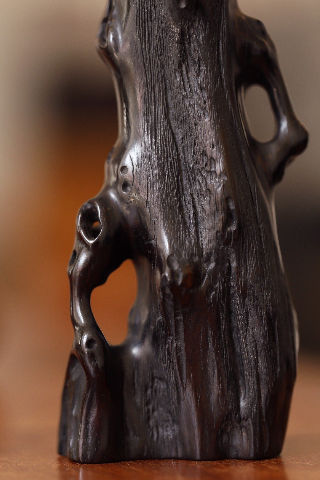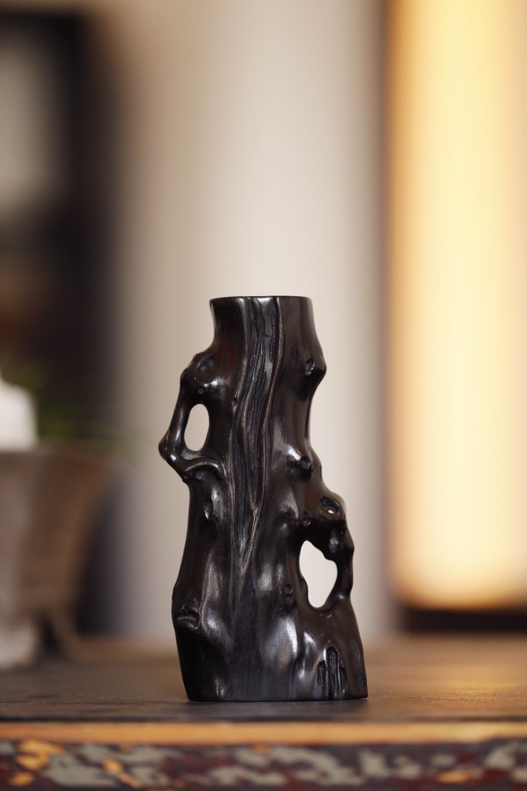 老紫檀 | 随形花插紫檀一木整挖,随形浮雕而成,构思巧妙,给人以厚重质感,刀法纯