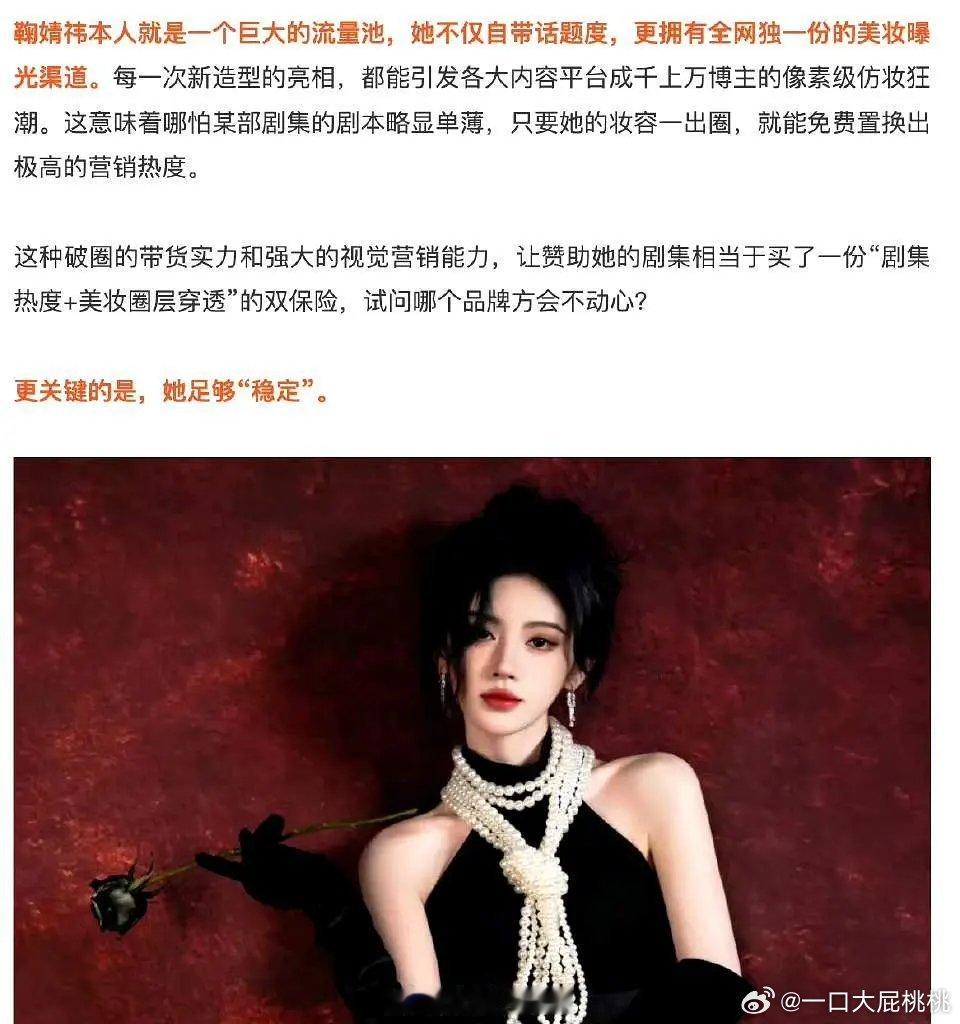 鞠婧祎被业内评“抗风险能力天花板”,她核心确实蛮稳的。