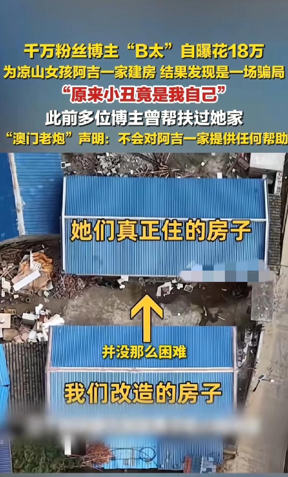 明明是一片好心,掏心掏肺、出钱出力帮她,结果全是演出来的,破房子是摆拍,家境困难是编的,一家人靠卖惨博同情、骗资助,把别人的善意当成赚钱的手段。