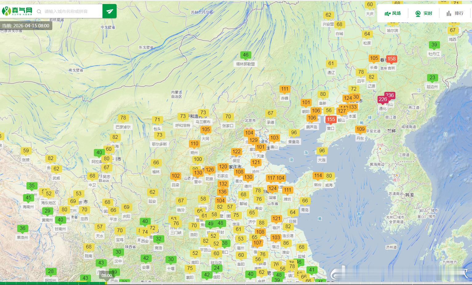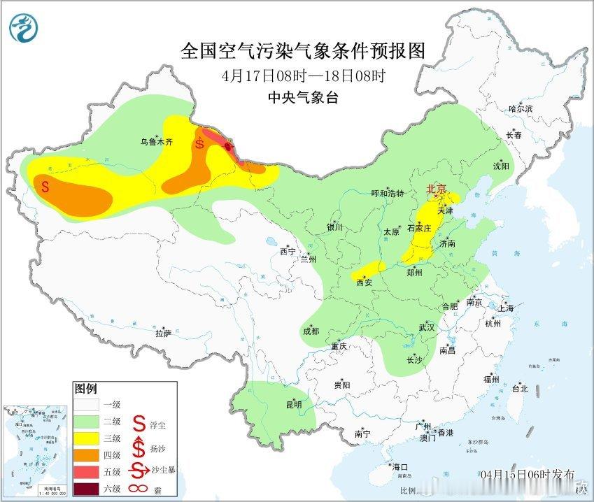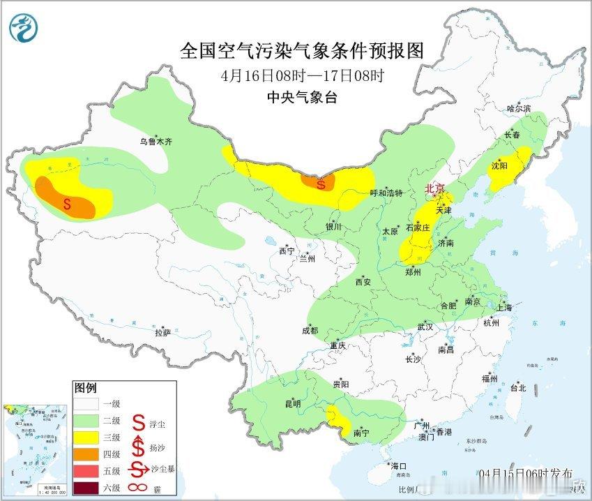 从空气质量看,吉林白山、通化出现重污染,吉林省吉林市、辽宁营口有中度污染,京津冀多地有轻度污染,对应有霾。此外新疆博州,今晨出现沙尘污染,PM10明显超标。后天因为冷空气和降水影响,东北的霾有望消散。此外,未来西北多地,可能还会有沙尘出现。