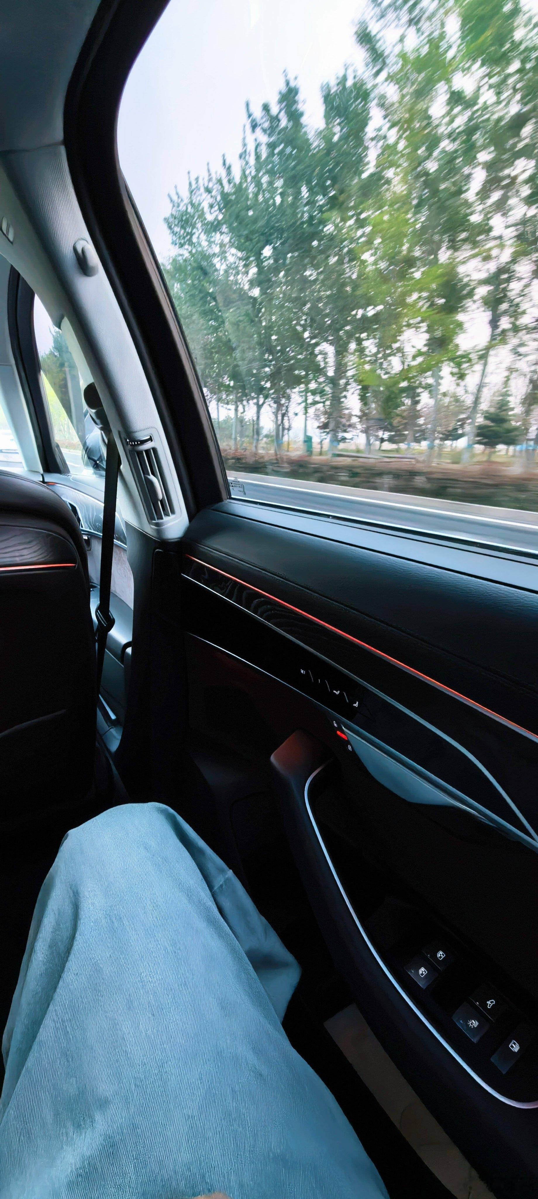 坐上了大A8,出发去机场。忘穿行政夹克了,这一路我坐得像个学生一样。A8L这空间