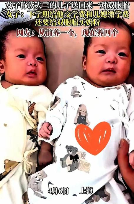上海一个大三男生,直接给家里"投放"了一对双胞胎,连人带娃打包回家,顺手把下学期
