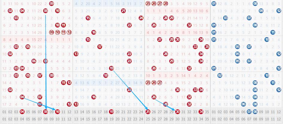 三区25 30 34 同跨度斜连号25 30,30/34左右对称。