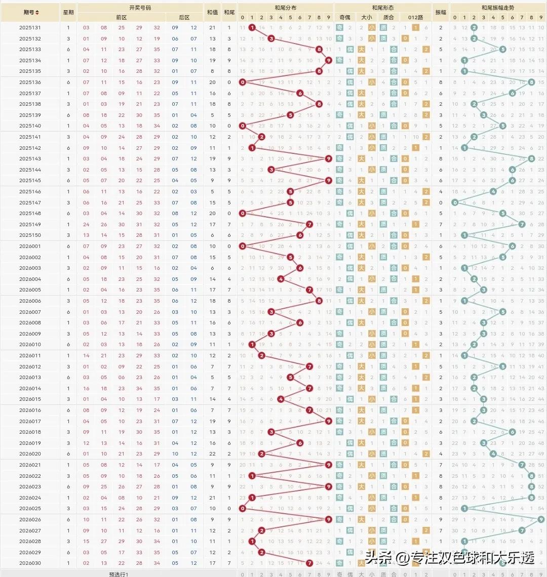 上期26030期选的5+2仅出了1+1,还是很一般!这次再选5+2试试看。