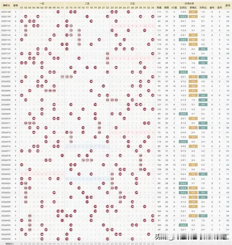 由于上期26036期双色球红球和蓝球都偏了,啥都没有、全军覆没。 我决定本期2