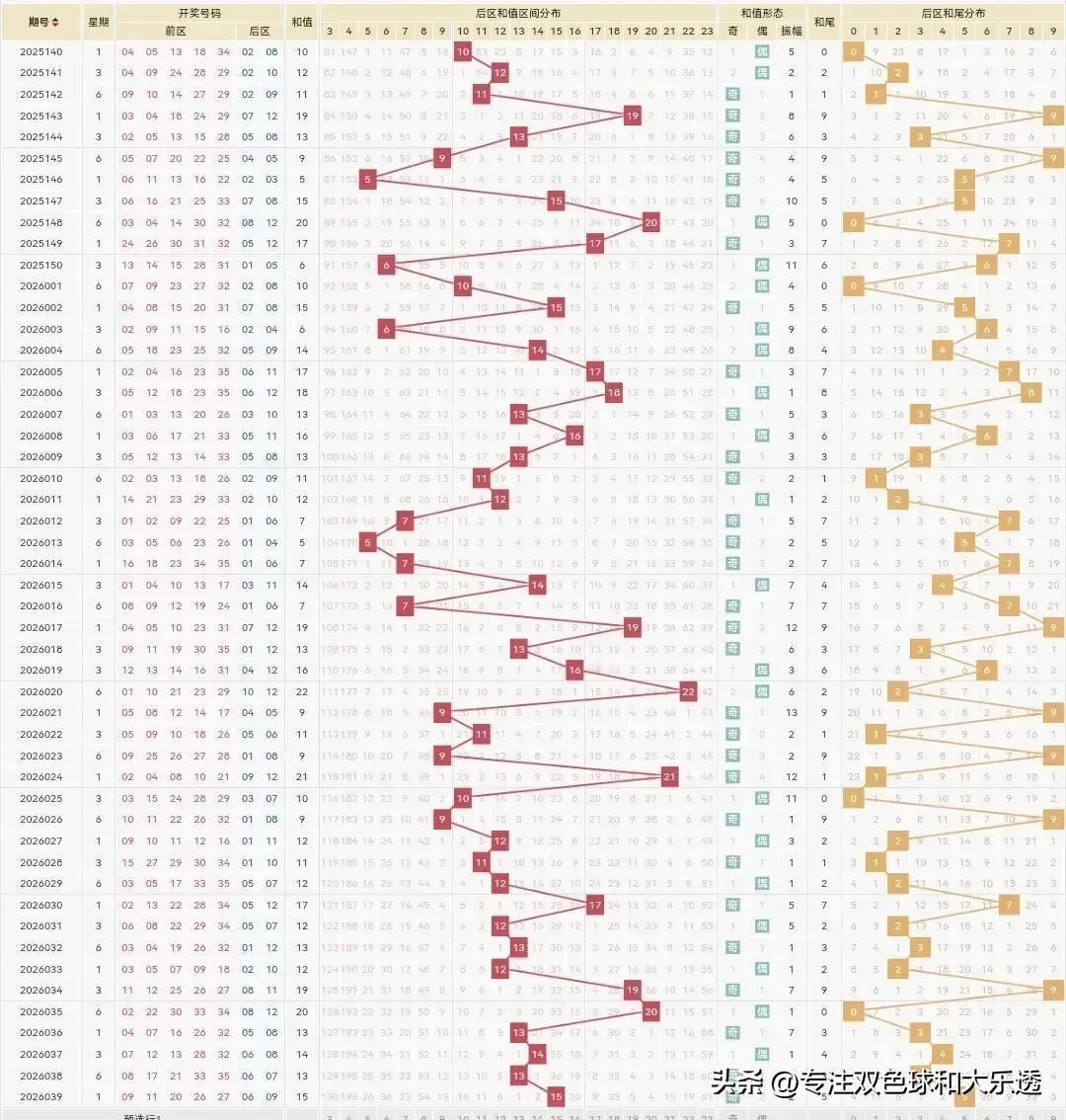 大乐透26040期: 上期26039期前区虽然选的不多,但还是拉胯了。好在后区