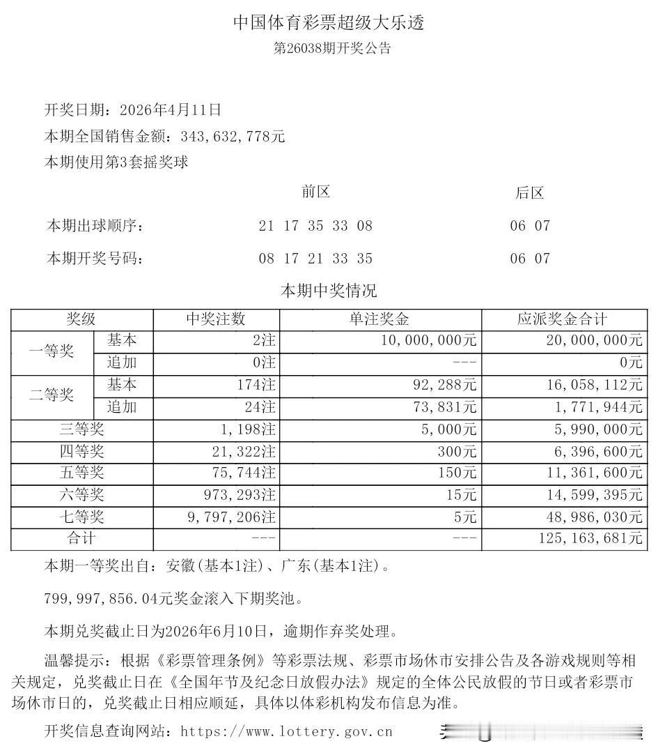 本期26039期前区2码:10.34。