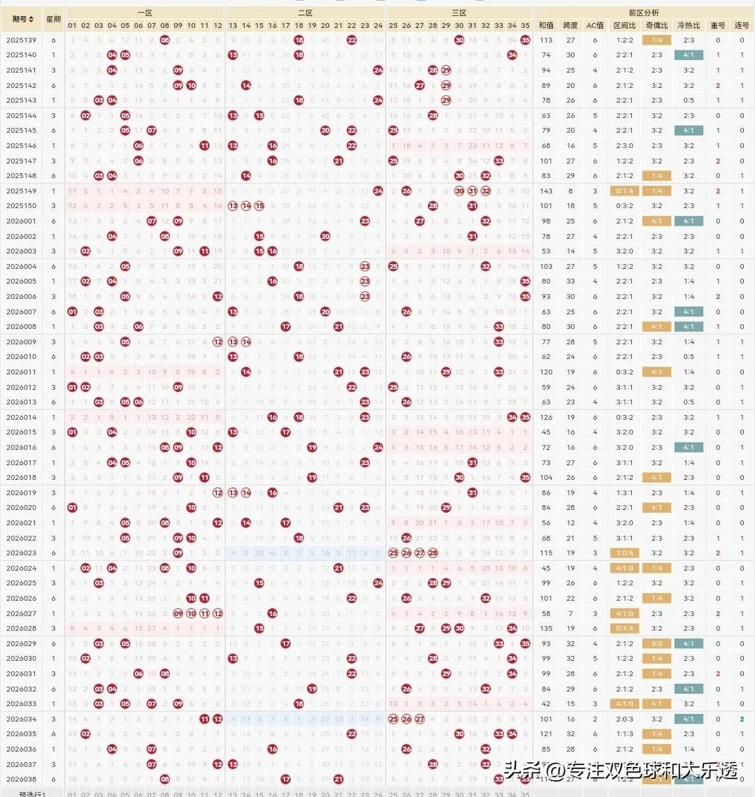 大乐透26039期: 上期36038期前区选了3个,一个都没有。 本期039