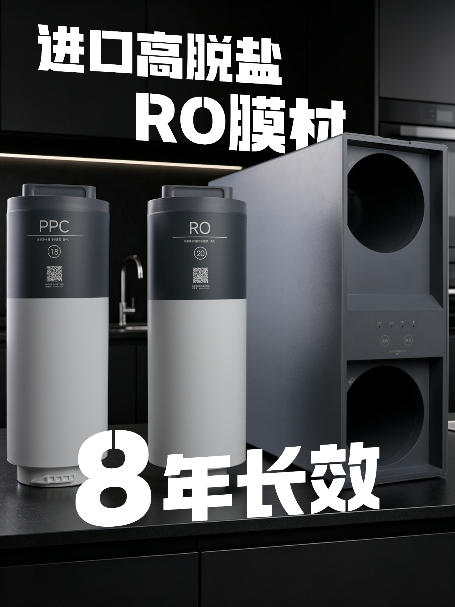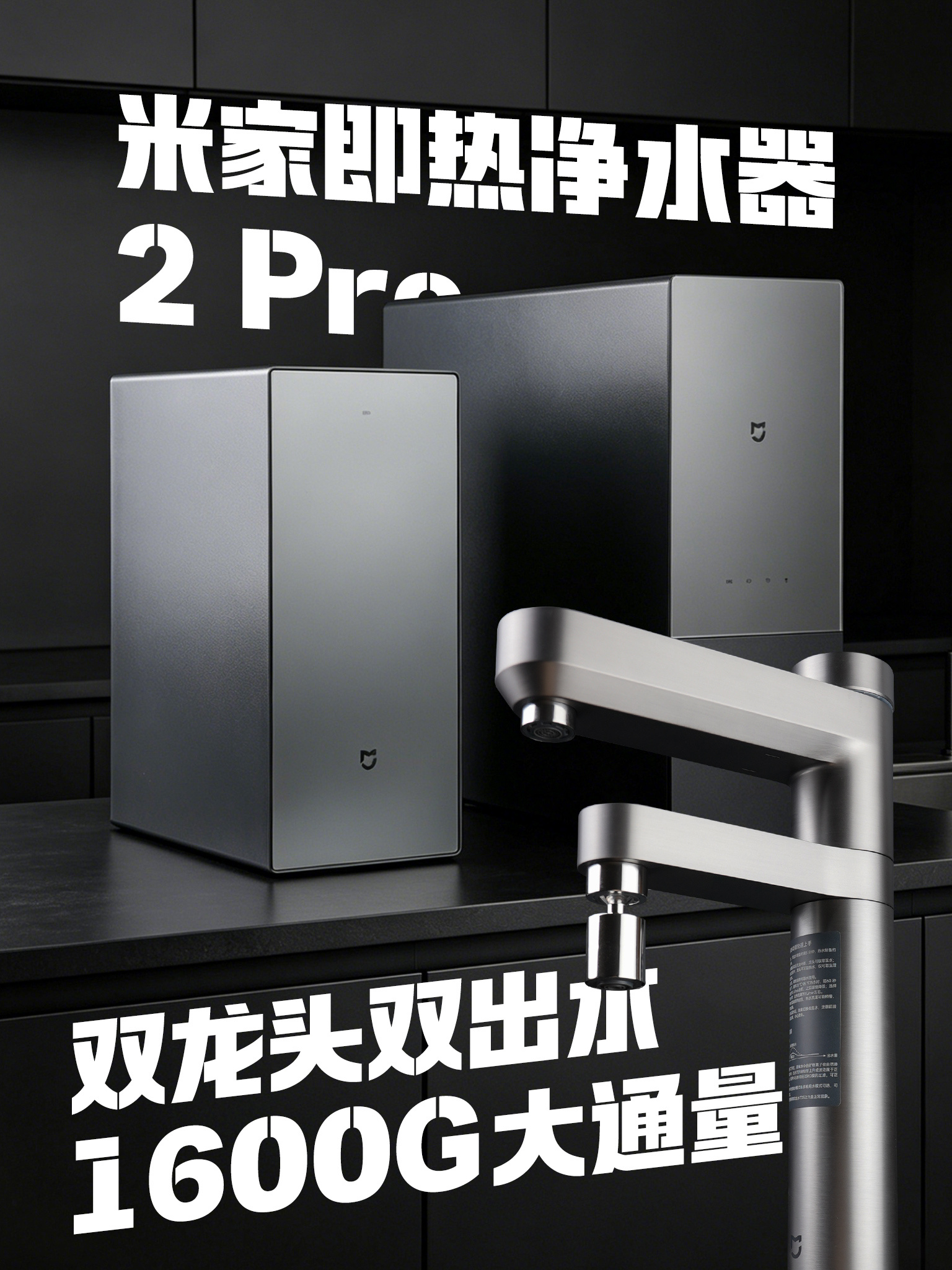 米家即热净水器 2 Pro和常温水净水器首先在外观结构上有较大差别:自带一个方形的加热模块。快速制热,预热还有四档温度调节功能的实现,都得益于这个加热模块。如今市面上很多净水器都具备双出水功能,但米家这款新品的特别之处在于,它的双出水并非共用一个龙头,而是生活水、纯净水各自具备独立的龙头出水路。双龙头双水路带来的好处很明显:余氯的去除率更高,纯净水水质更好,物理隔绝可避免交叉污染。另外,双龙头都支持160度大角度旋转,平时在厨房里,洗菜淘米和接饮用水可以做到互不干扰。米家即热净水器 2 Pro内部使用一枚8年长效的RO滤芯,还有一枚更换周期为一年半左右的PPC滤芯,进口高脱盐的RO膜材可以滤除水里的145种有害物质。1600G大通量、无阻垢剂、一级水效再加上即热能力,净水器的发展进化有多快,米家即热净水器 2 Pro就是最典型的代表。小米即热净水器小米双出水净水器智能厨房选小米