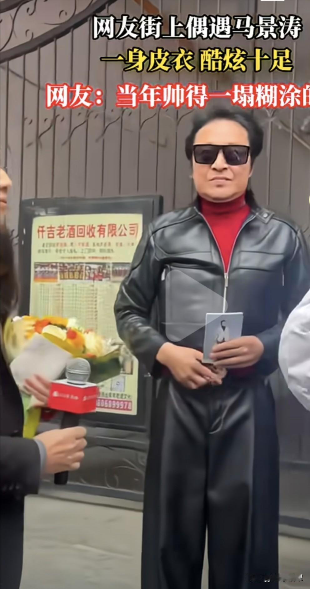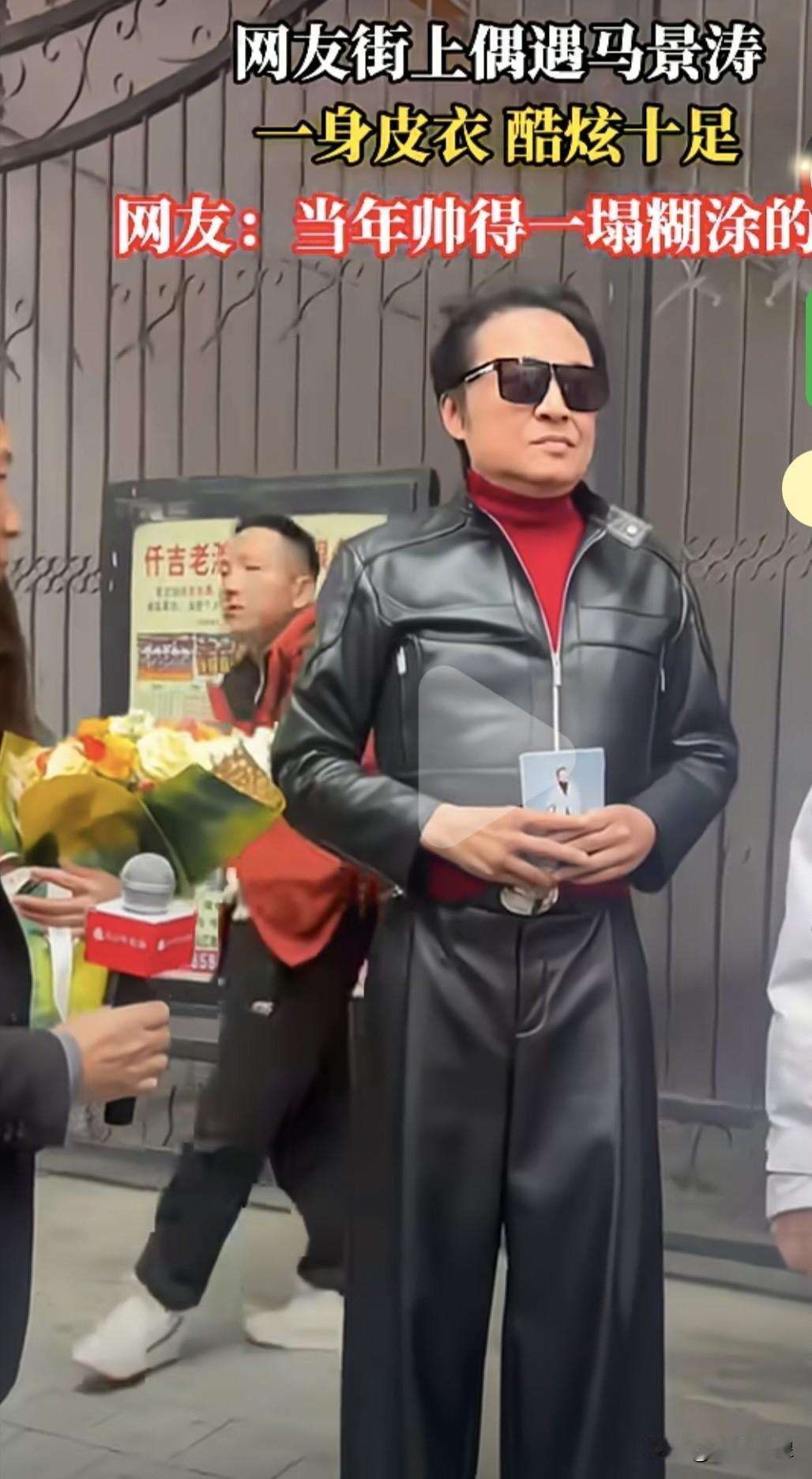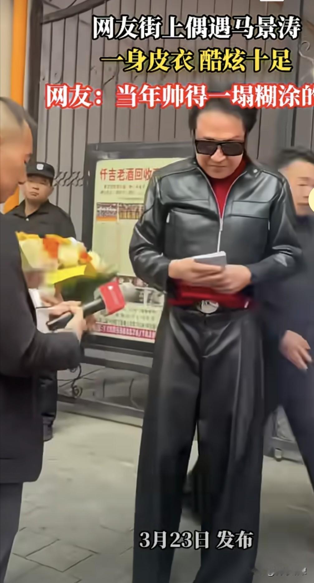 网友在街上偶遇 曾经的咆哮小马哥 只见他一身黑色的皮衣 戴着酷炫的墨镜 身姿依然